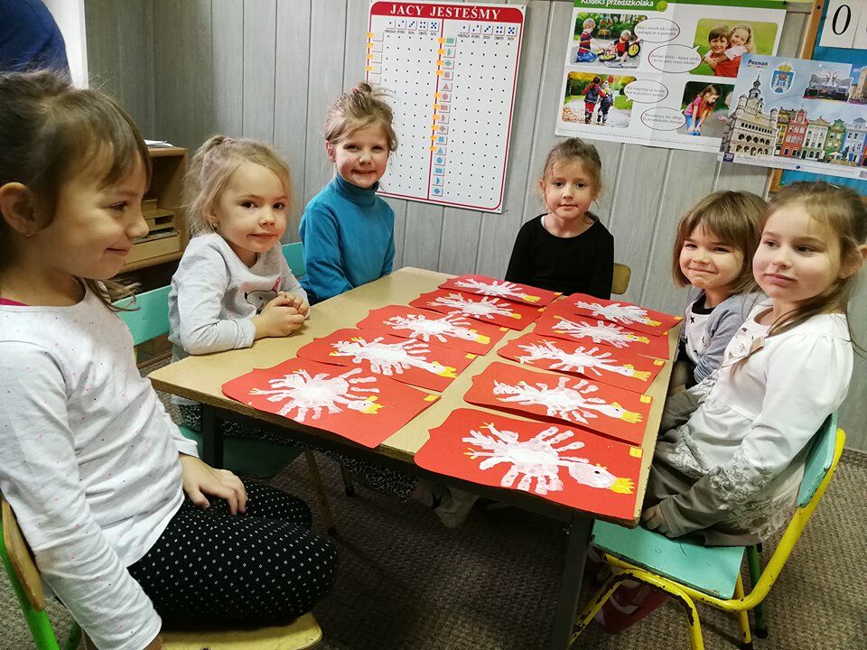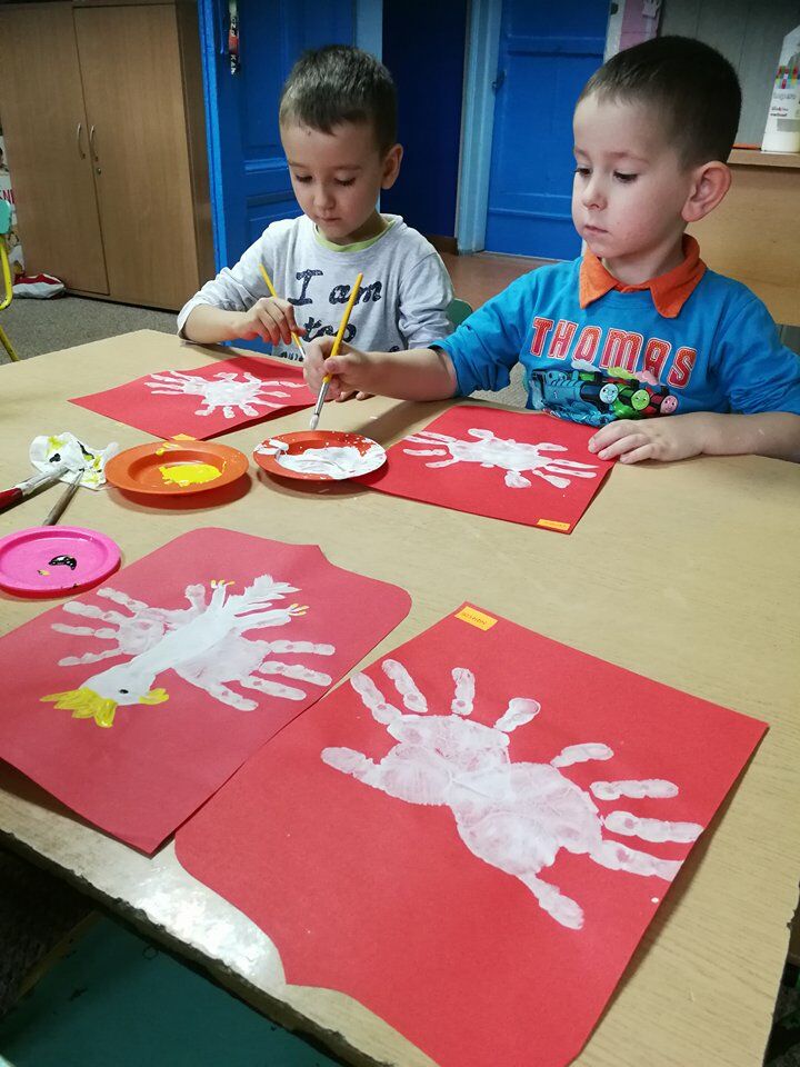 W naszym przedszkolu zrobiło się bardzo patryiotycznie, gdy w każdej sali wybrzmiał Hymn Polski, a na tablicach zawisły biało-czerwone flagi. Dzieci wykonywały także Godła Polski, posługując się różnymi technikami plastycznymi. Efekty ich pracy są niezwykłe!