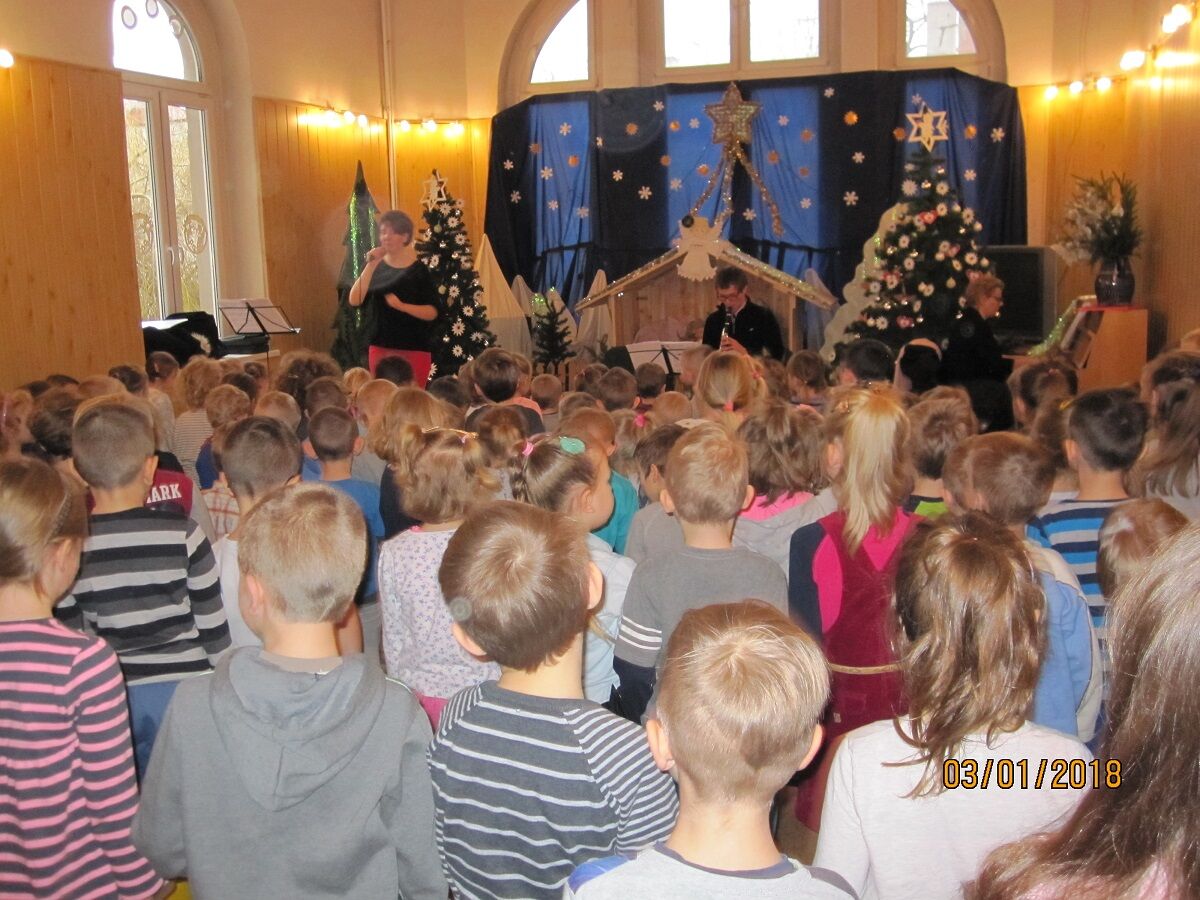 Dziś odwiedzili nas muzycy z Filharmonii Dolnośląskiej. Podczas koncertu dzieci mogły usłyszeć dźwięki fletu i pianina oraz nauczyć się meksykańskiego tańca, zwanego „Tańcem Kapeluszy”. Dzieci miały także możliwość akompaniowania muzykom przy użyciu takich instrumentów jak: marakasy, ksylafon, dzwonek krowi i inne.