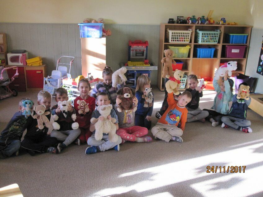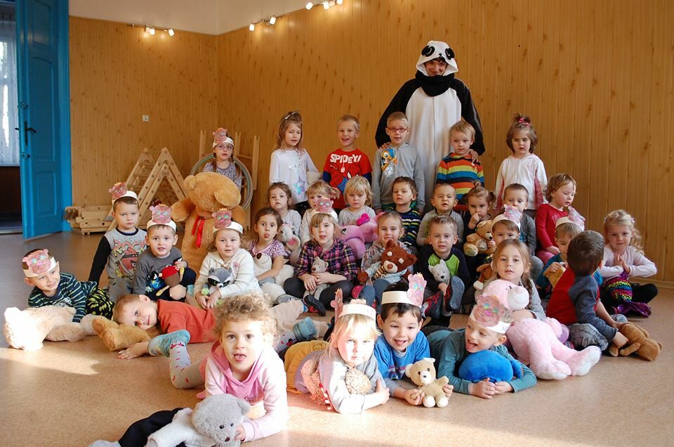 Dziś przedszkolaki poprzynosiły z domów swoje ulubione pluszowe misie, by razem z nimi bawić się i śpiewać im piosenki: „Pluszowy Miś” i „O kachaniu misia”. Piosenki, tańce i konkursy to niejedyne atrakcje w jakich uczestniczyły dzieci wraz ze swoimi milusińskimi. Grupa „Żuczków” i „Motylków” została odwiedzona przez pandę oraz degustowała pysznego miodku :)