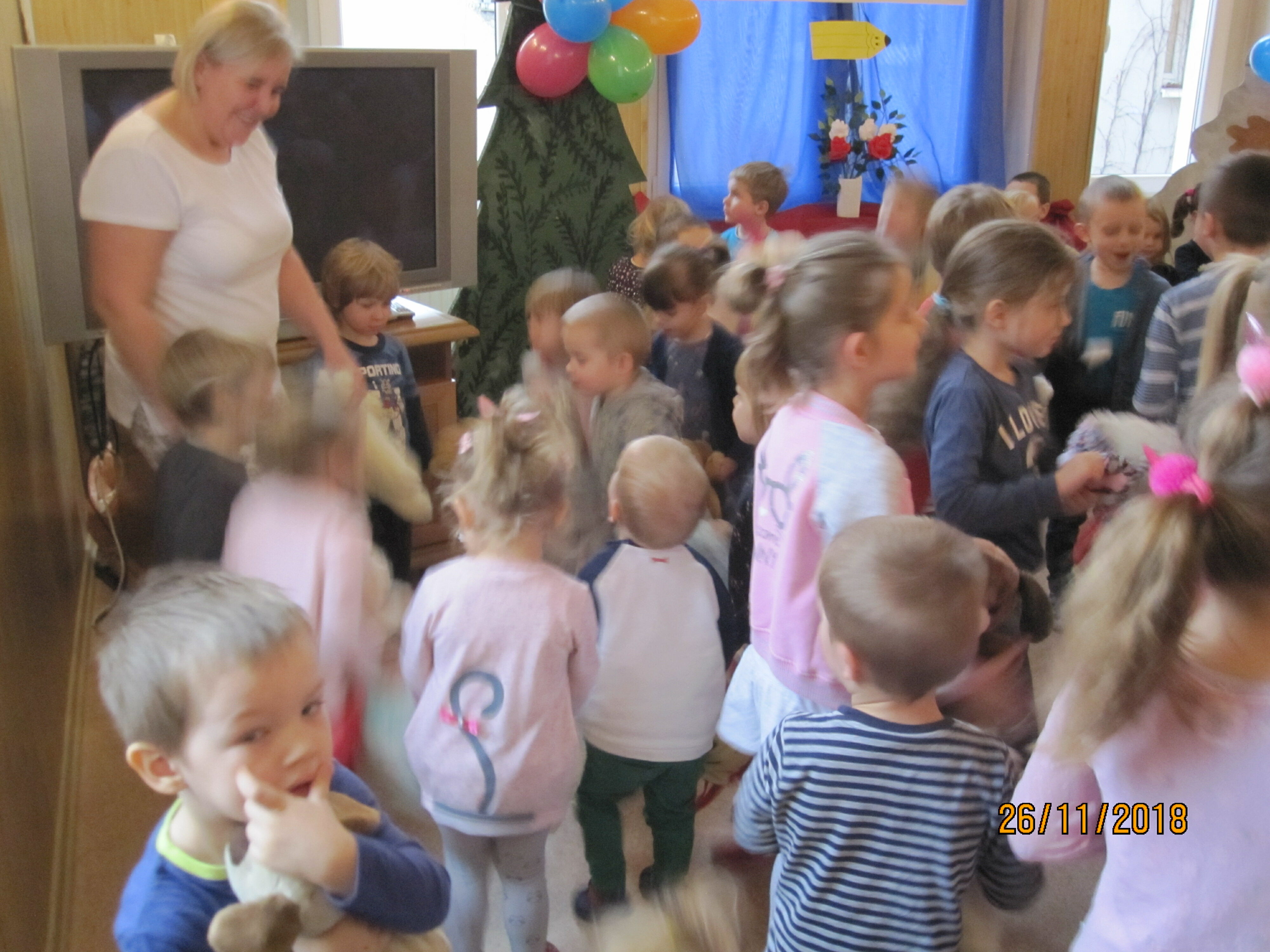 Dziś w naszym przedszkolu miłe święto: Dzień Pluszowego Misia. Z tej okazji wszystkie małe i duże przedszkolaki wraz z misiami doskonale bawili się na specjalnie przygotowanej dyskotece. Nie zabrakło misiowych piosenek i tego, co misie lubią najbardziej...miodu.