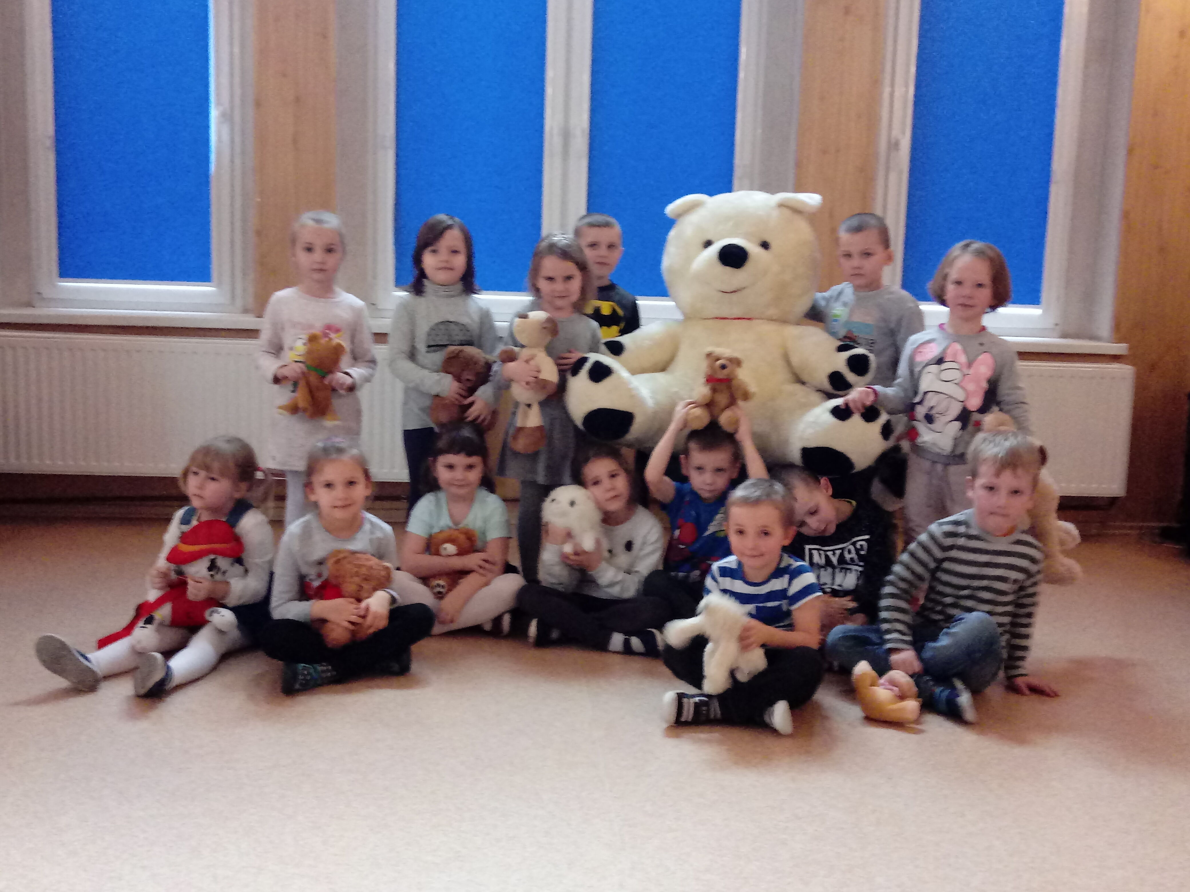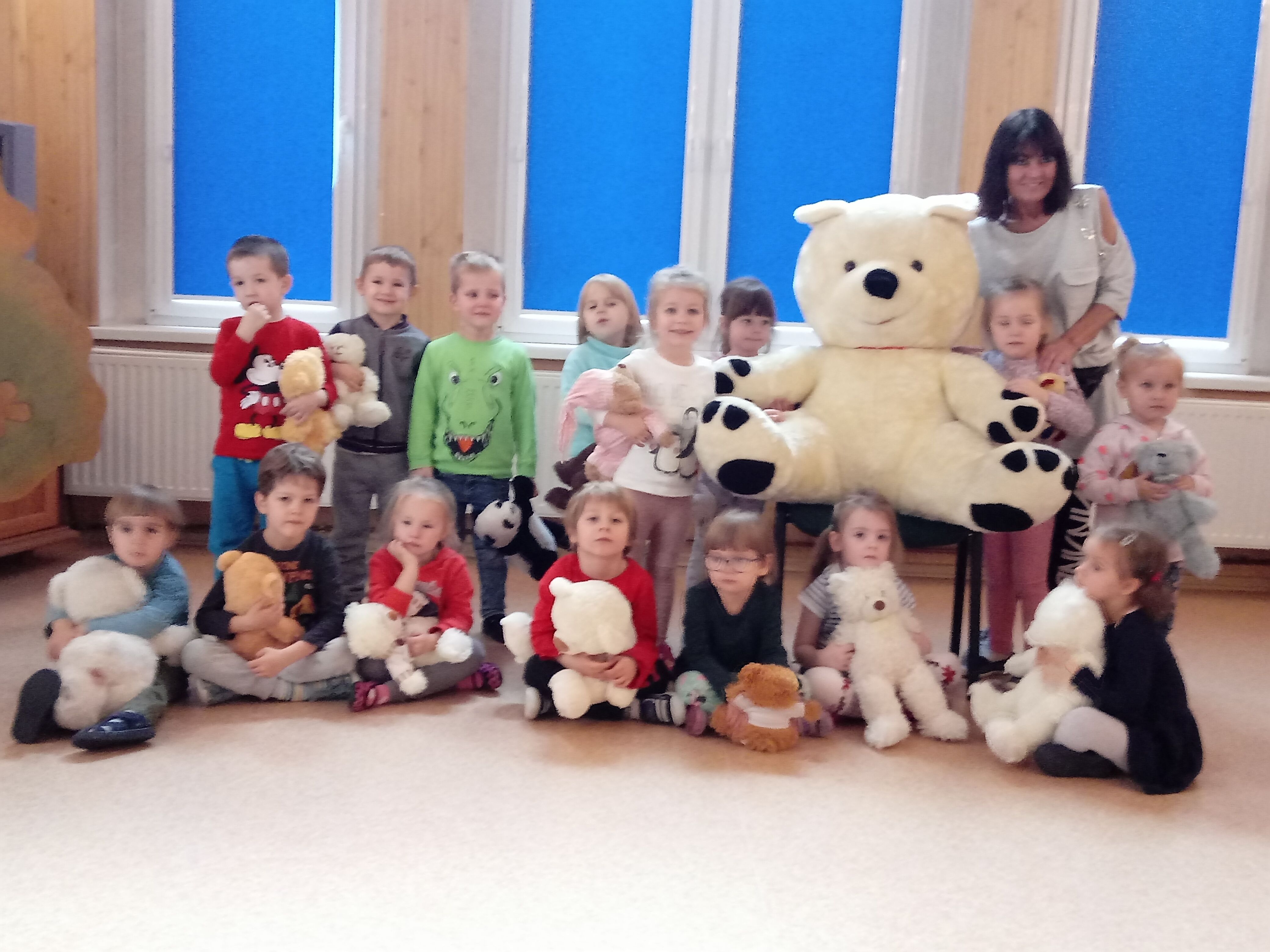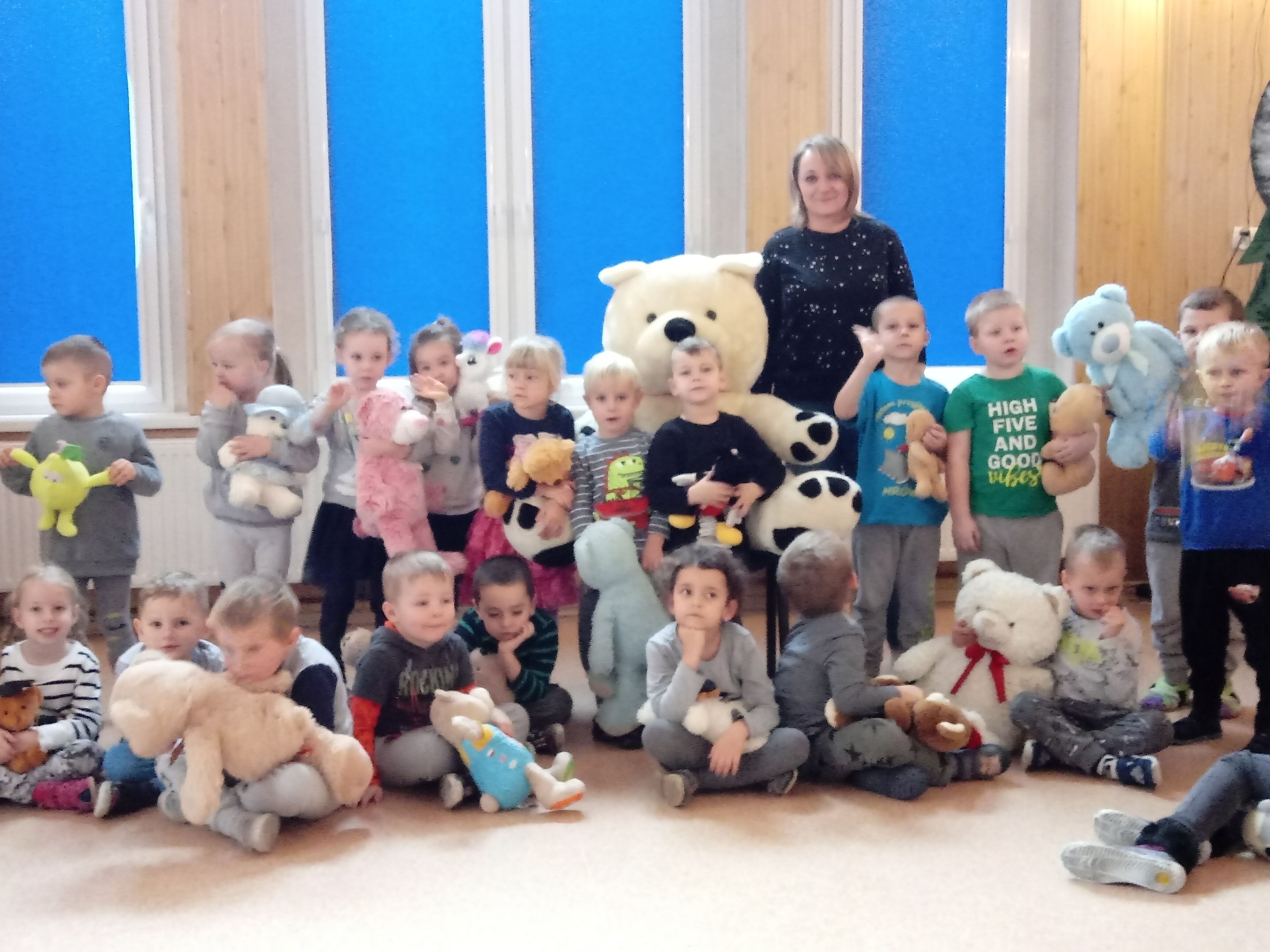 Dzieci radośnie bawiły się z misiami, śpiewały znane piosenki o prluszakach i rozwiązywały zagadki z nimi związane. Twórczo interpretowały muzykę ruchem. Dzięki wspaniałej zabawie w każdym miejscu sali panowała atmosfera radości. dzieci bardzo chętnie się bawiły. Wielką atrakcją dla dzieci była możliwość zrobienia zdjęcia z ogromnym pluszowym misiem.