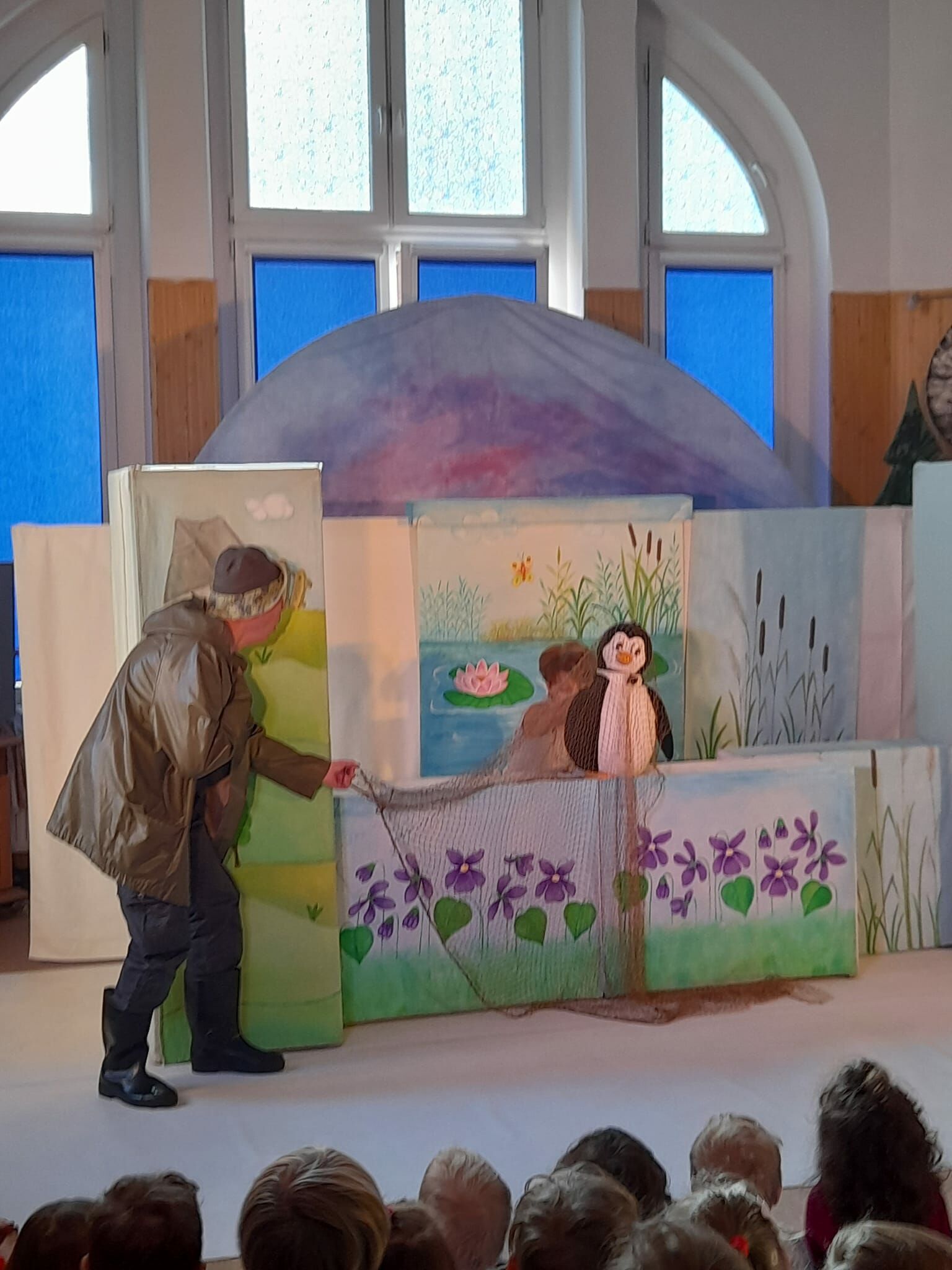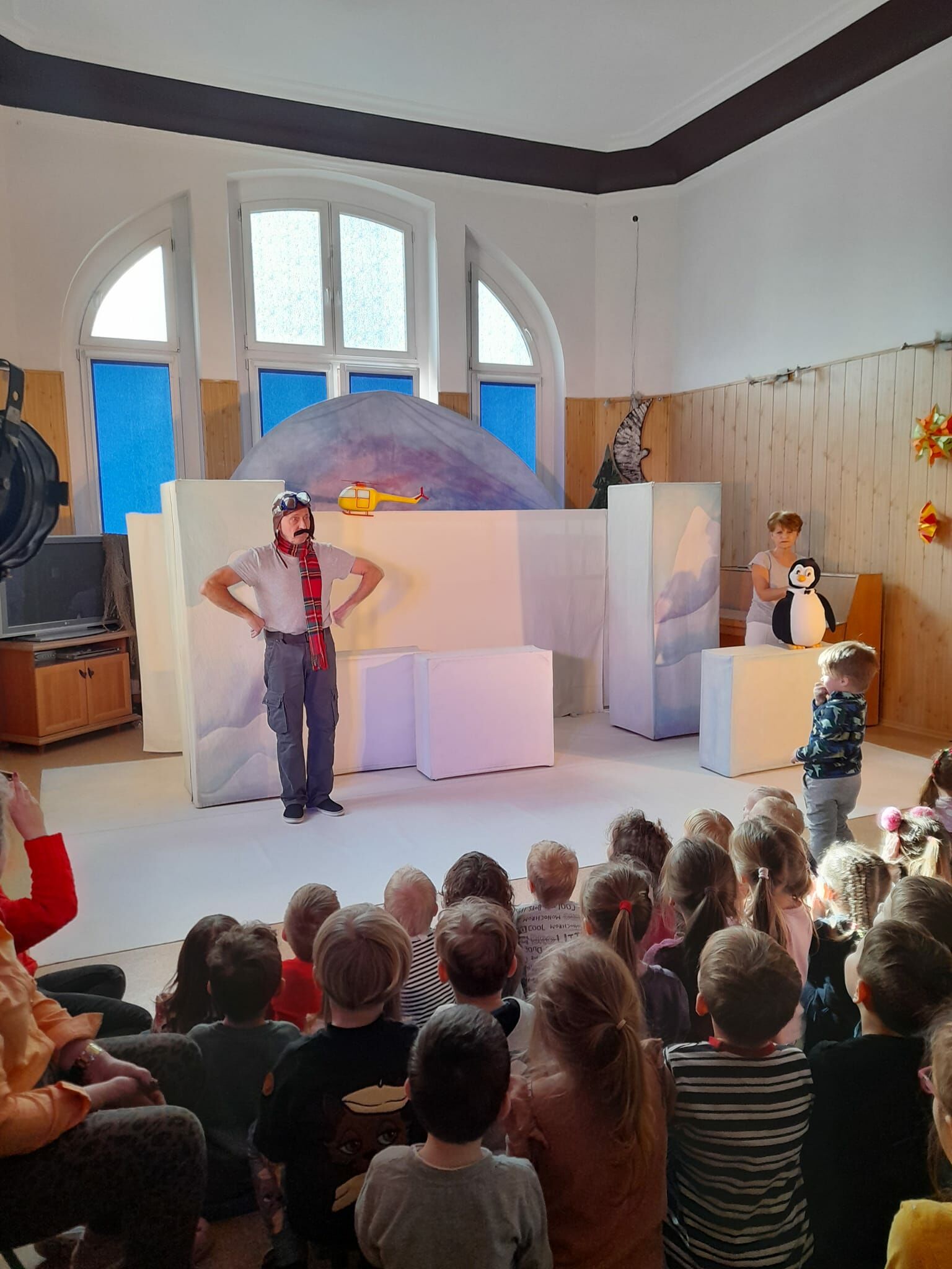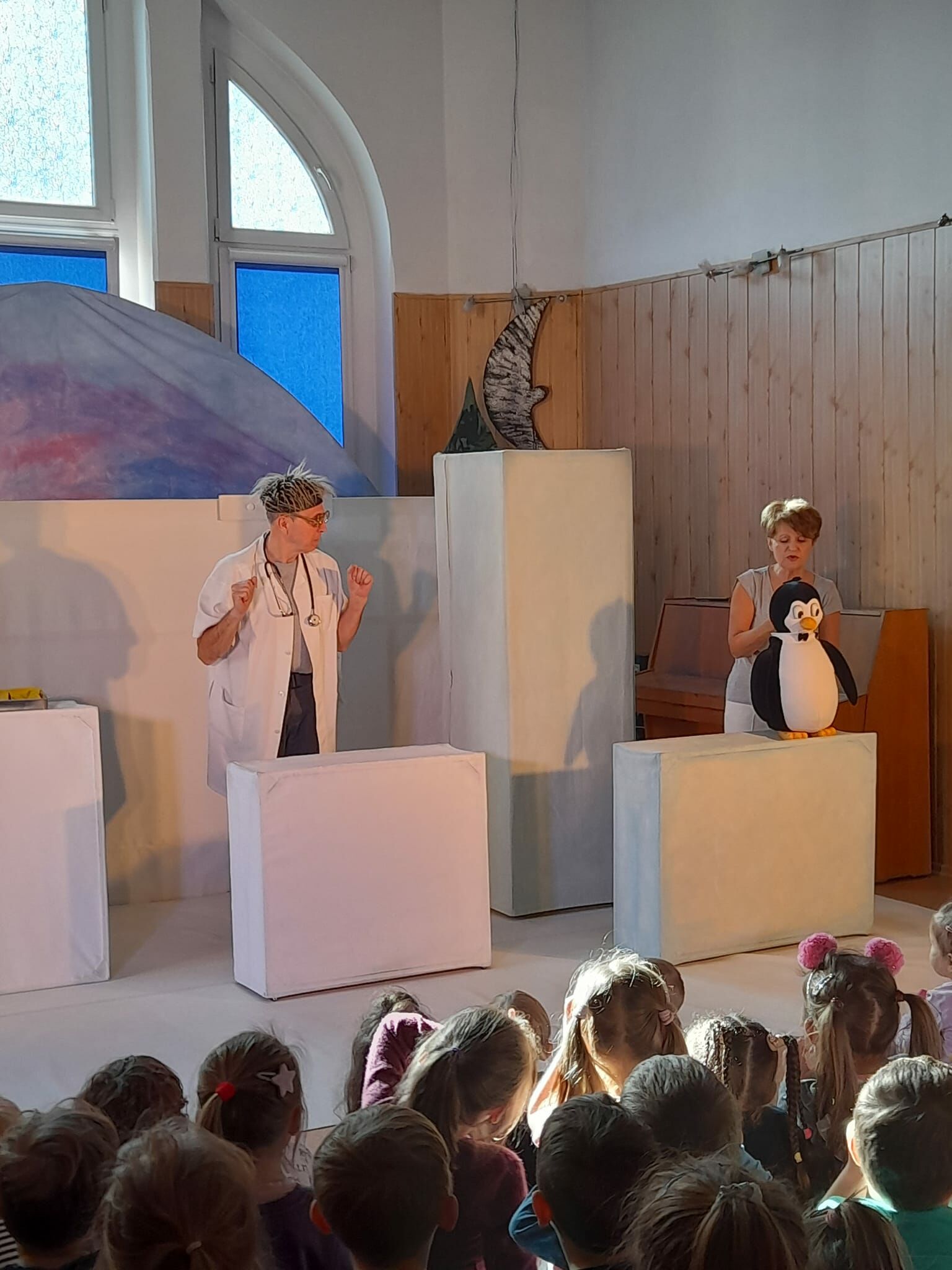 ,,Przygody pingwina Pik-Poka” - to wesoła opowieść, z którą 2 lutego zawitał w przedszkolu uwielbiany przez dzieci Teatr ,,Igraszka” z Wałbrzycha. Bohater spektaklu to niesforny pingwinek, który chciał wyruszyć w świat, gdyż znudziło mu się życie w lodowej krainie. Dzięki kapitanowi ,,Odważnemu” odwiedza przeróżne miejsca i staje się bohaterem wielu przygód.