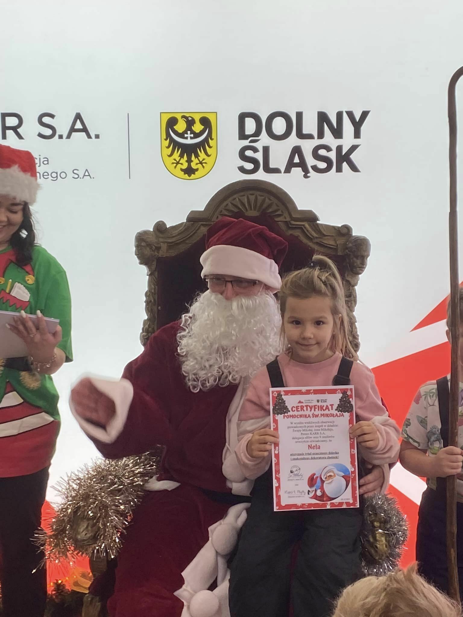Kilka dni wcześniej dzieci przygotowywały w przedszkolu z wielkim zapałem kolorowe łańcuchy i inne błyszczące ozdoby na choinkę. Mikołaj, który po udekorowaniu choinki pojawił się w Galerii nagrodził dzieci pamiątkowymi certyfikatami ,,Pomocnika Świętego Mikołaja” oraz drobnymi upominkami za wykonaną pracę.