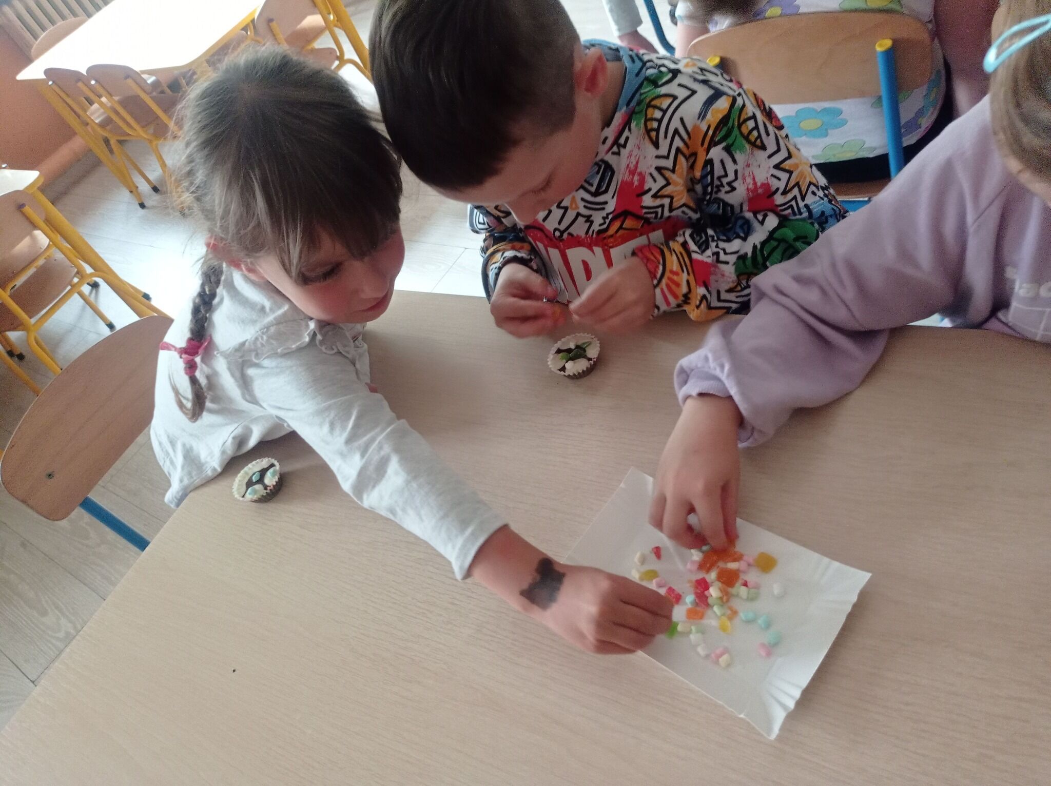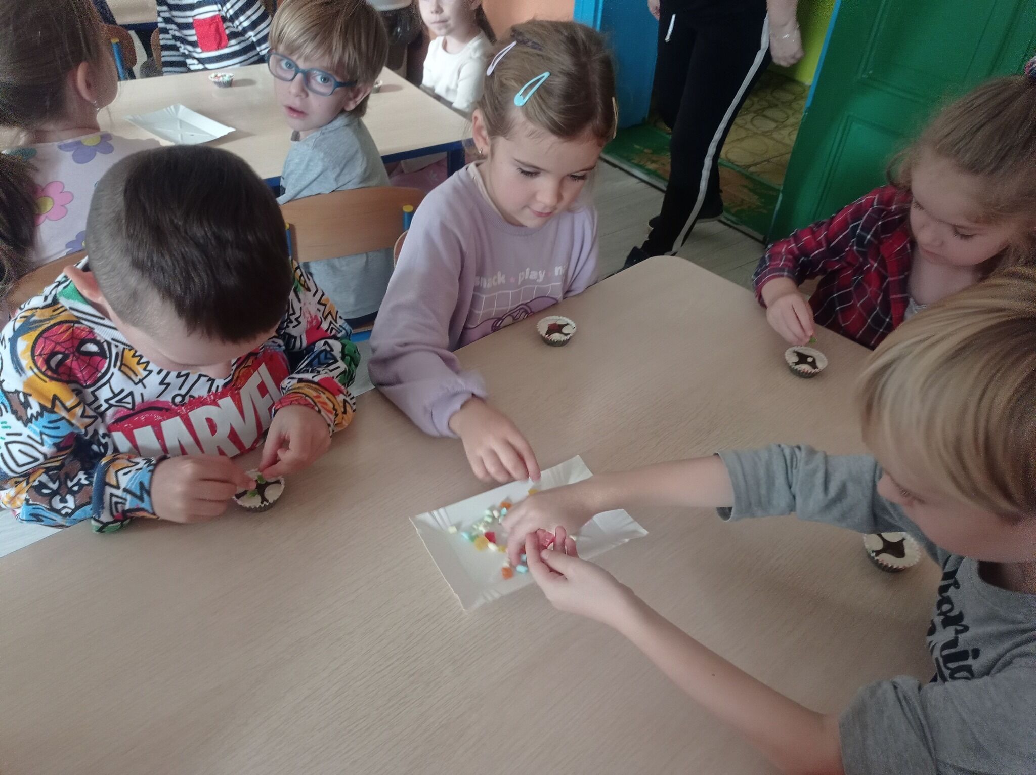 Magiczna podróż po świecie słodkich przygód zawitała do naszego przedszkola w październikową środę. Dzieci poznały proces powstania uwielbianego przez małych i dużych smakołyku jakim jest czekolada, począwszy od ziarna kakaowego, aż po wyjątkowe smaki. Miały też możliwość dekorowania swoich pralinek. Wiadomo je się też oczami… oraz degustowania ich.