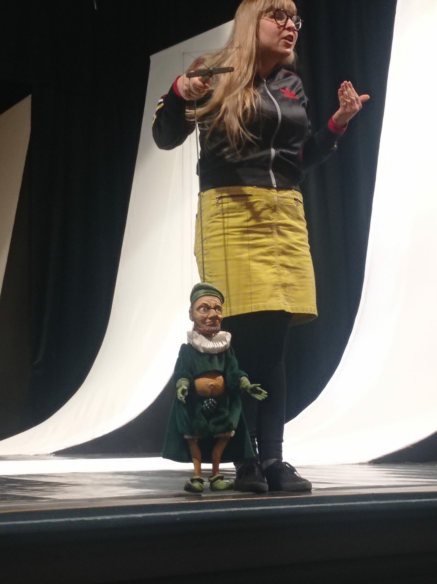 Po spektaklu dzieci miały jeszcze możliwość uczestniczyć w spotkaniu z pracownikiem teatru animacji. Pani w ciekawy sposób opowiedziała o funkcjonowaniu tego magicznego miejsca, przybliżyła kilka nazw z jakimi można się tam spotkać. Zademonstrowała lalki wykorzystywane