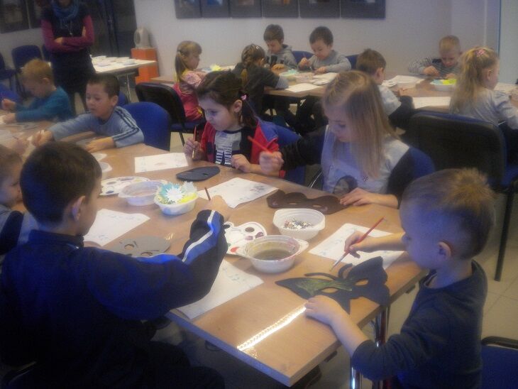 Dziś nasi wychowankowie wzięli udział w warsztatach asrtystycznych w muzeum gdzie własnoręcznie wykonywały maski karnawałowe.