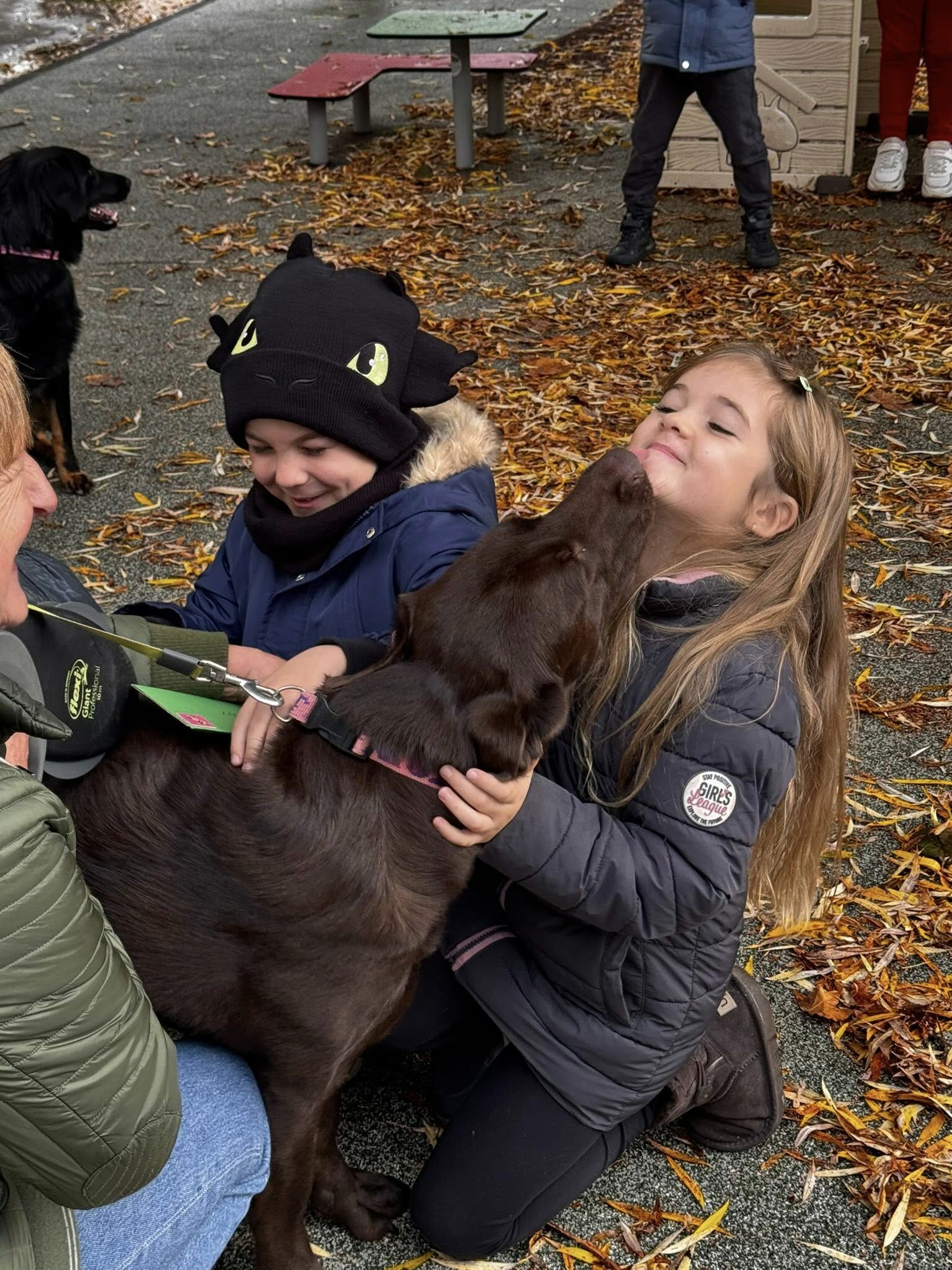 Podczas spotkania pani Ania opowiedziała dzieciom o codziennej pracy w schronisku, o potrzebach zwierząt oraz o tym, jak ważna jest odpowiedzialność człowieka wobec swoich czworonożnych przyjaciół. Dzieci dowiedziały się, jak właściwie opiekować się psem, jak go głaskać i jak rozpoznawać jego emocje.