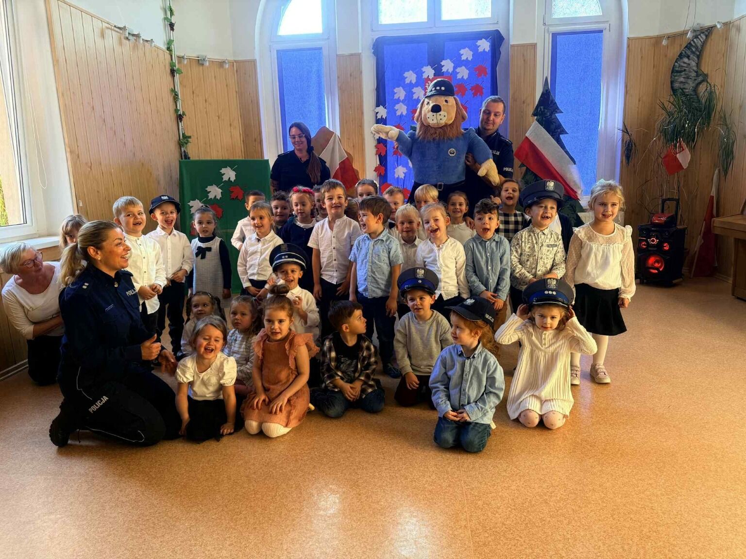 Wyjątkowe spotkanie z funkcjonariuszami Policji z I Komisariatu Policji w Jeleniej Górze odbyło się 7 listopada w naszym przedszkolu. Goście opowiedzieli dzieciom o swojej pracy oraz przypomnieli najważniejsze zasady bezpiecznego zachowania — w domu, na ulicy i podczas zabawy.