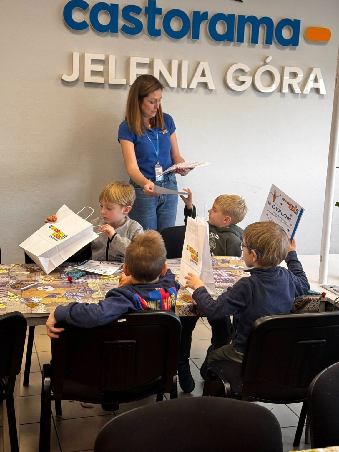 Zajęcia przebiegały w miłej i przyjaznej atmosferze, a pracownicy Castoramy służyli pomocą i wsparciem na każdym etapie tworzenia. Gotowe skrzaty stały się piękną, świąteczną ozdobą oraz pamiątką z warsztatów.