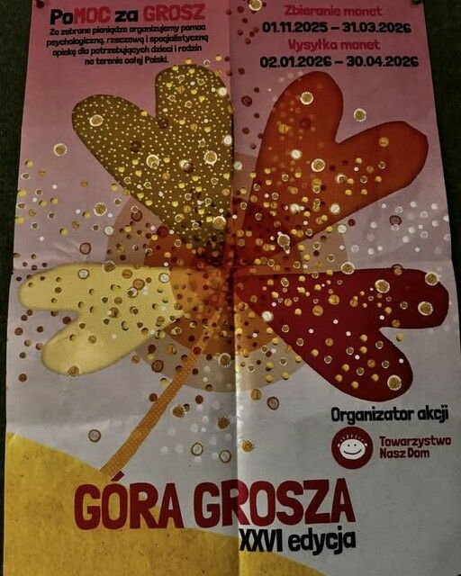 Dzieci z przedszkola „Bajka” po raz kolejny z radością biorą udział w ogólnopolskiej Akcji Góra Grosza, która trwa od 1 listopada 2025 r. do 31 marca 2026 r. To wyjątkowa akcja, która uczy najmłodszych pomagania, dzielenia się oraz wrażliwości na potrzeby innych dzieci.