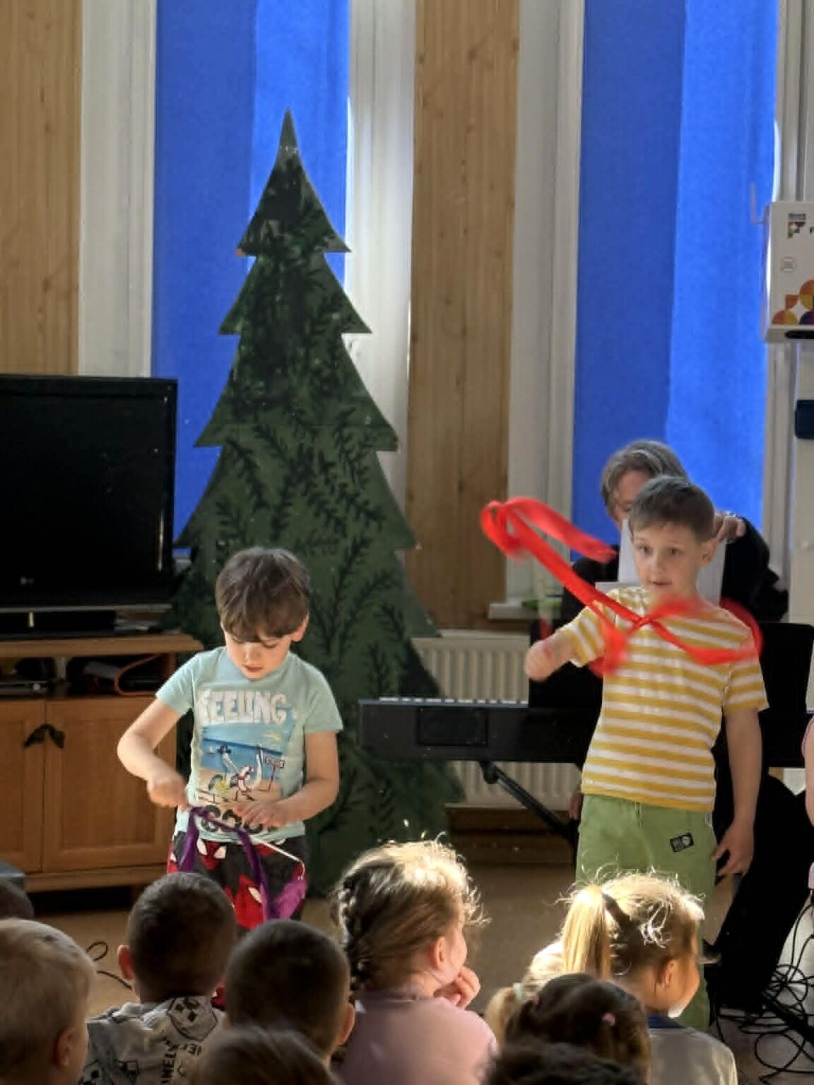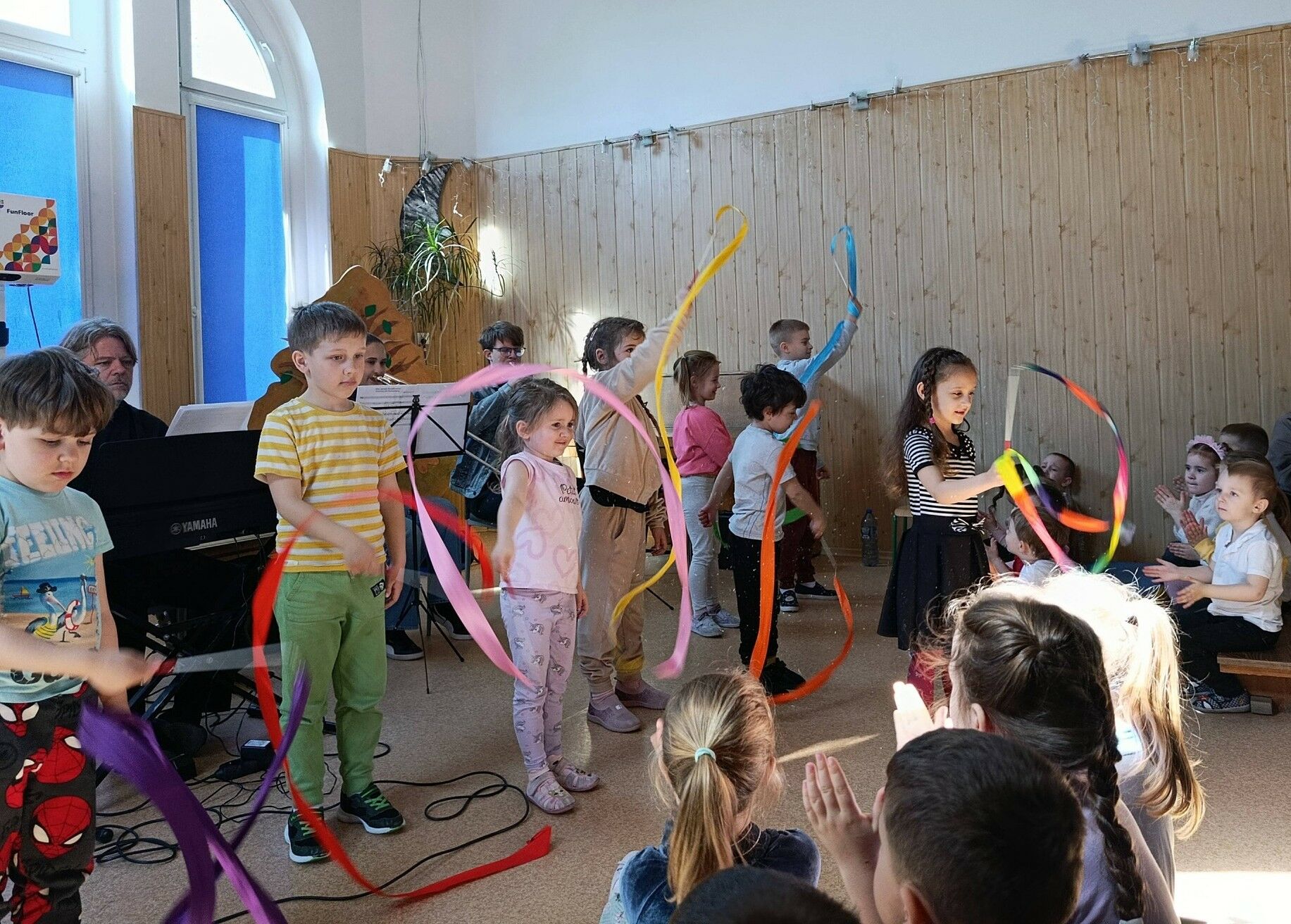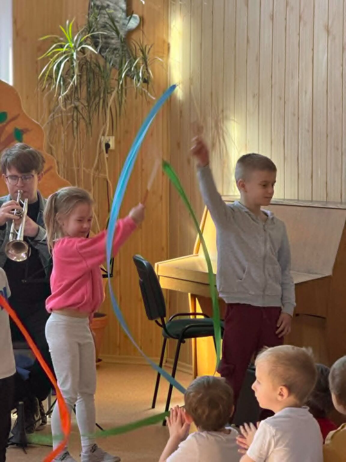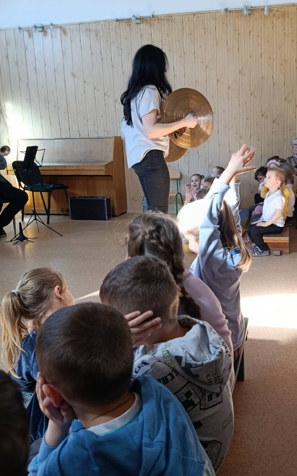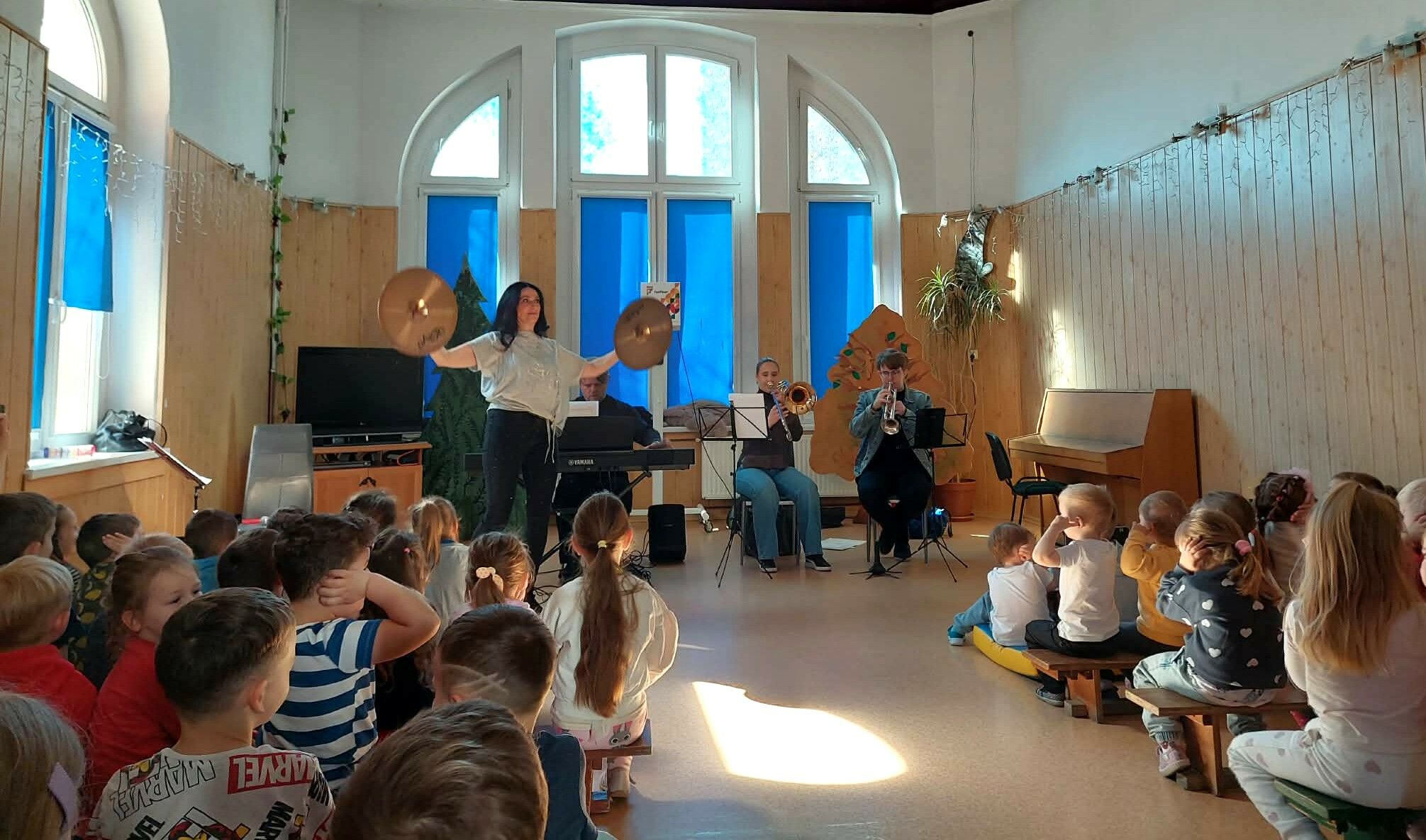 Główną rolę odegrały instrumenty perkusyjne, których bogactwo brzmień i dynamiczna energia wywoływały ogromne emocje wśród dzieci. Towarzyszyły im instrumenty klawiszowe, a także puzon i trąbka, które wspólnie tworzyły niepowtarzalny klimat kosmicznej opowieści. Różnorodność dźwięków pozwoliła dzieciom odkrywać muzykę w zupełnie nowy, fascynujący sposób.