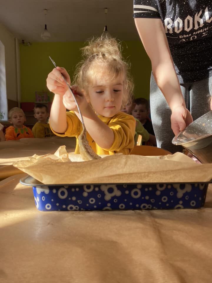 Jesienne ,,Święto Dyni” w grupie ,,Żabek” i ,,Żuczków” to wspólne pieczenie ciasta dyniowego oraz ozdabianie babeczek. Nie brakowało emocji podczas gotowania. Każdy jednak cierpliwie czekał bo wiedział, że końcowy efekt ich pracy będzie bardzo zadowalający. I tak też było. Wszystko zostało zjedzone ze smakiem.