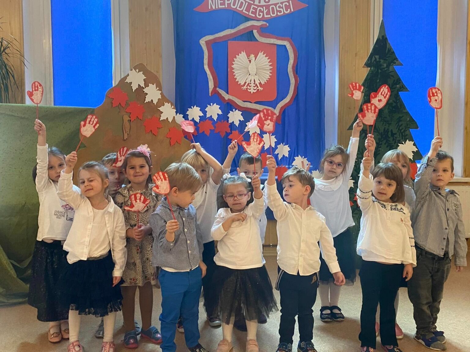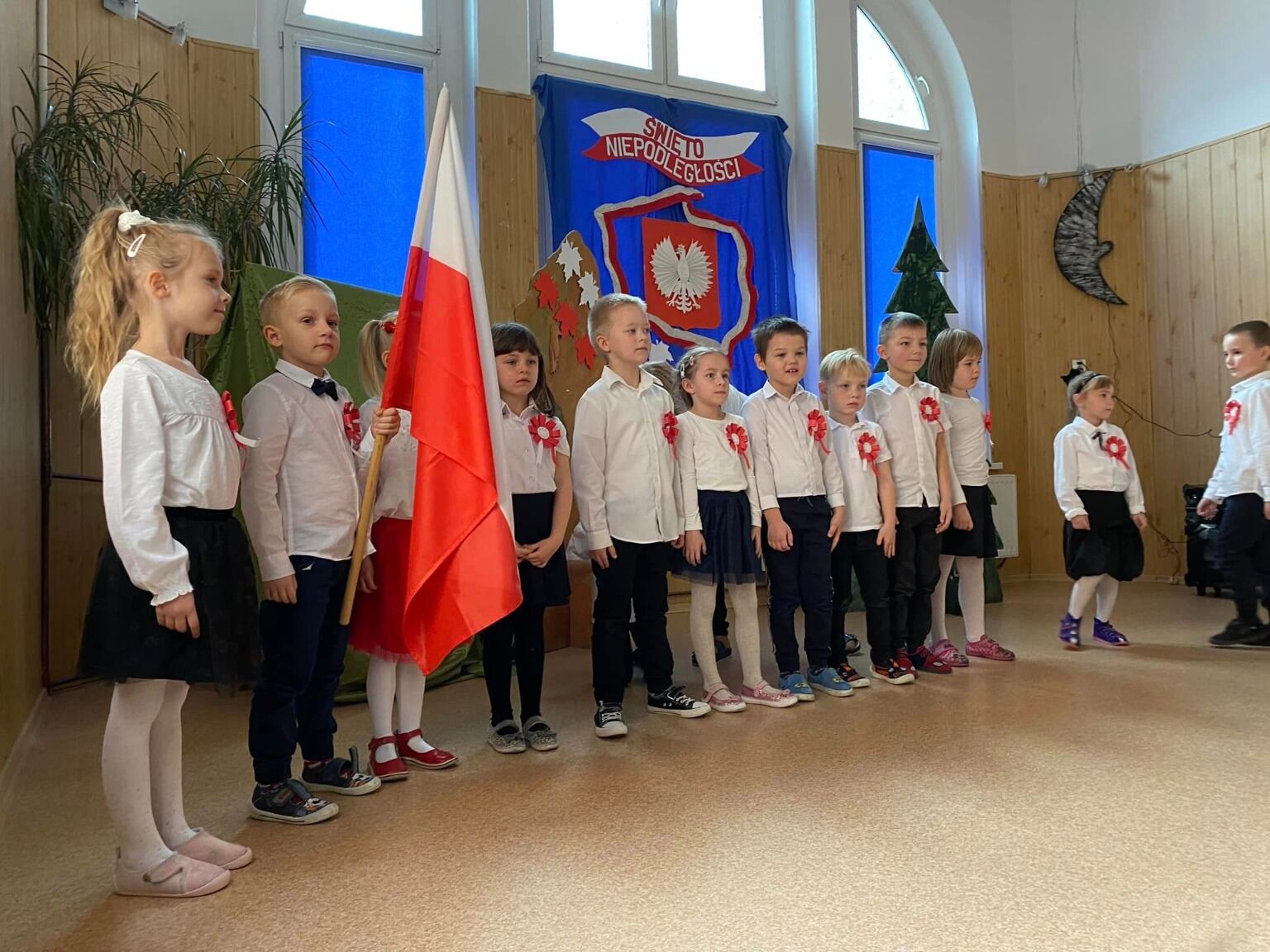 10 listopada w biało- czerwonych barwach oraz odświętnych strojach odbyła się w przedszkolu akademia z okazji Dnia Niepodległości, przygotowana przez starszaków z grupy,, Pszczółki”. Mali patrioci w krótkiej inscenizacji, wierszach i piosenkach przybliżyli swoim młodszym kolegom i koleżankom historię Polski, a także przynależność do ojczyzny- Polski. Wspólnie odśpiewany hymn zjednoczył dużych i małych zebranych na sali.