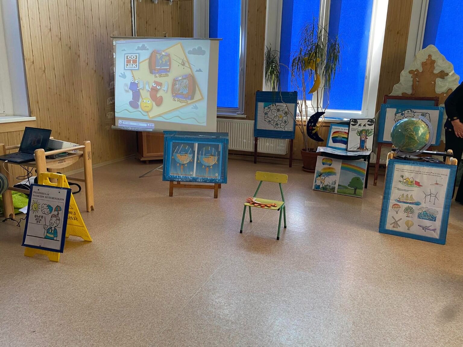 ,, Przedszkolak meteorologiem” to temat warsztatów dla dzieci jakie odbyły się w przedszkolu 1 marca. Zajęcia dotyczyły zjawisk pogodowych, ich powstawania, następstwa dnia i nocy, pór roku. Wszystko poparte było doświadczeniami, filmem, rekwizytami oraz aktywnym uczestnictwem dzieci w przedstawianiu konkretnych sytuacji i zjawisk. Poruszane tematy nie były, ale wzbudziły zaciekawienie nawet najmłodszych dzieci.