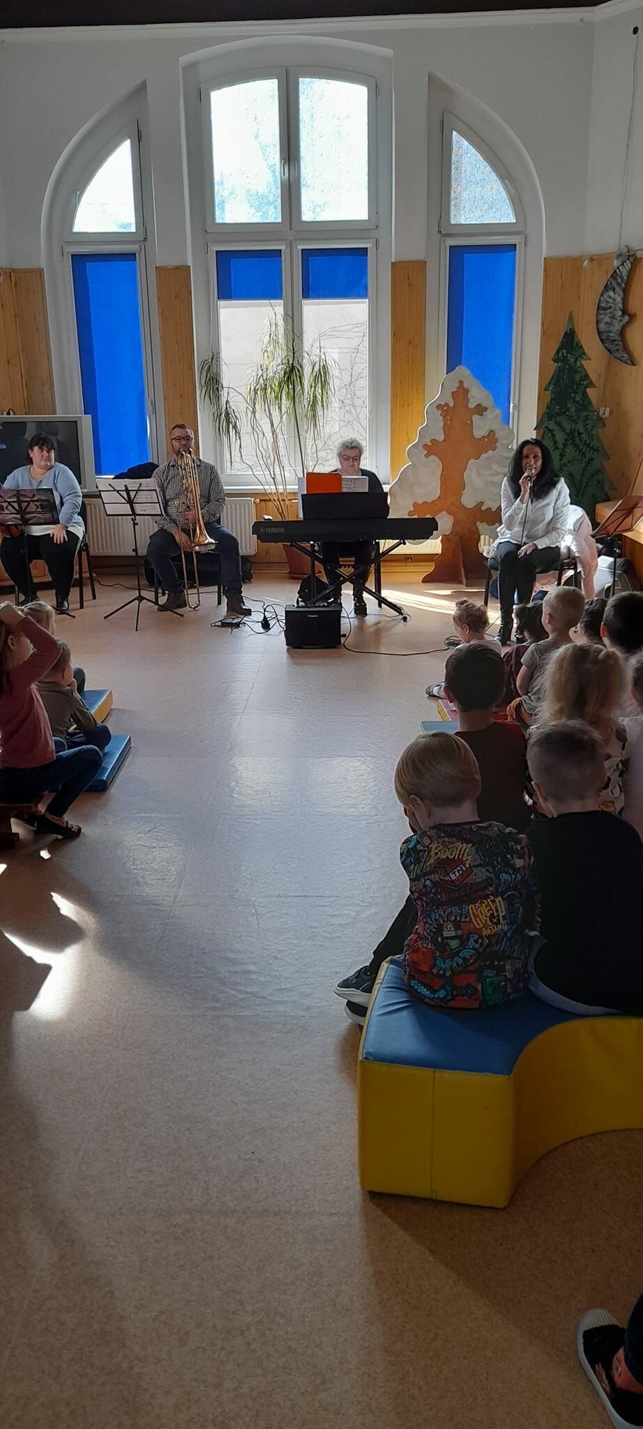 ,, Opowieść o zaczarowanym kwiatku” to muzyczna baśń, z którą przybyli do przedszkola muzycy z filharmonii dolnośląskiej 22 marca br. Za sprawą instrumentów dzieci przeniosły się w magiczny świat baśni. A zaczynała się ona tak: ,,…. Przez las biegła dobra wróżka. Śpieszyła się tak bardzo, że nie zauważyła, jak z małej sakiewki wysypała się odrobina magicznego pyłku. W tym miejscu kiełkowało niewielkie ziarenko, które dzięki mocy pyłku zamieniło się w piękny zaczarowany kwiat. Potrafił on czytać emocje każdego, kto się do niego zbliżył i spełniać wszelkie życzenia …, ale musiał być spełniony jeden warunek…