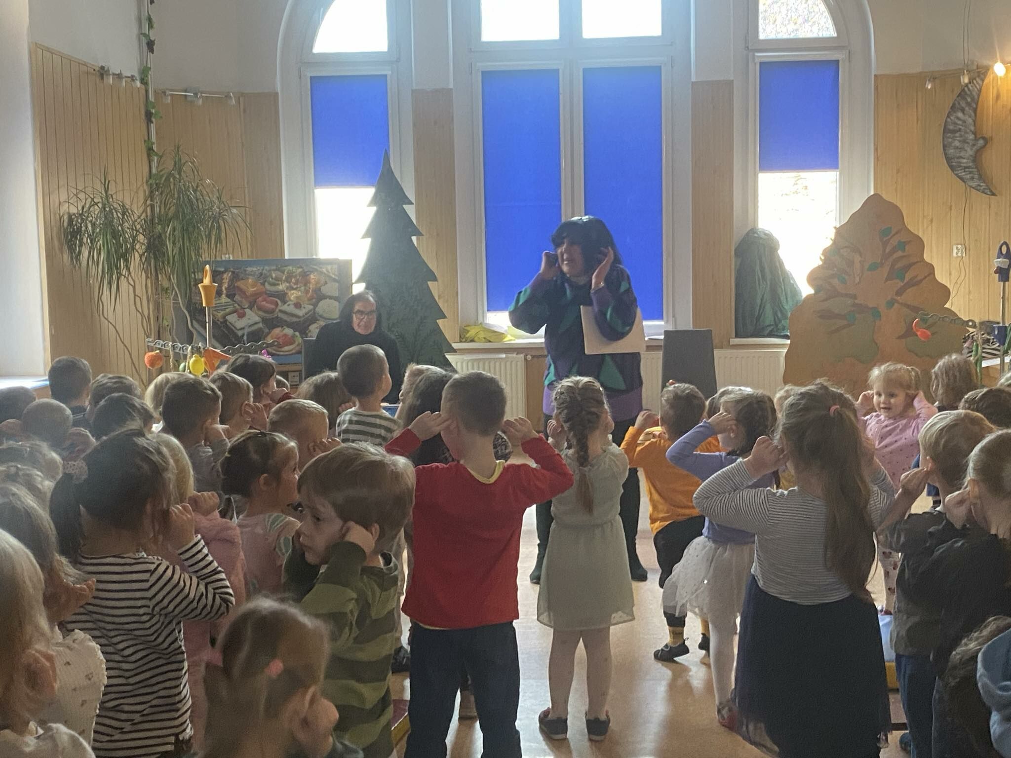 Dzisiaj w przedszkolu było zdrowo i kolorowo. ,,ABC zdrowego odżywiania, zdrowo jemy nie tyjemy” to nowy program edukacyjno- profilaktyczny z jakim przybyli do naszego przedszkola p. Bogdan i p. Ewa - przedstawiciele Wydziału Edukacji i Szkoleń z Centrum Popularyzacji Ochrony Środowiska oraz Ruchu Drogowego we Wrocławiu. Celem tego spotkania było przedstawienie dzieciom prawidłowych nawyków prozdrowotnych.