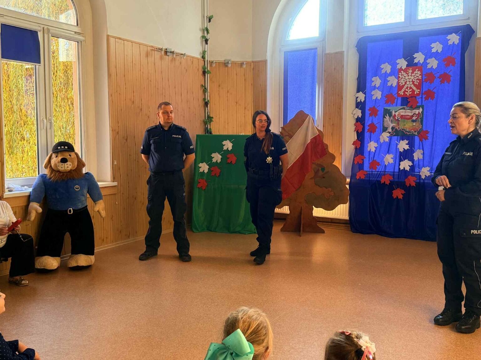 Wyjątkowe spotkanie z funkcjonariuszami Policji z I Komisariatu Policji w Jeleniej Górze odbyło się 7 listopada w naszym przedszkolu. Goście opowiedzieli dzieciom o swojej pracy oraz przypomnieli najważniejsze zasady bezpiecznego zachowania — w domu, na ulicy i podczas zabawy.