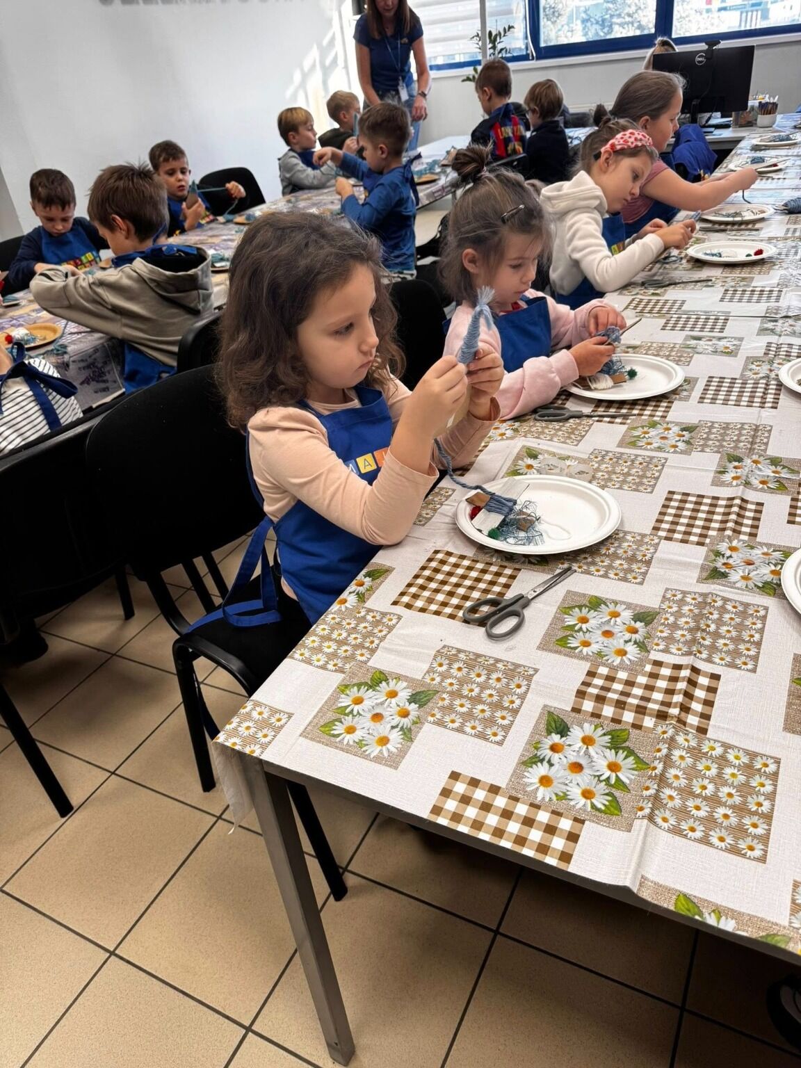 Podczas warsztatów przedszkolaki samodzielnie wykonywały świąteczne skrzaty, wykorzystując różnorodne materiały plastyczne. Dzieci z dużym zaangażowaniem tworzyły swoje prace, rozwijając wyobraźnię, kreatywność oraz zdolności manualne.