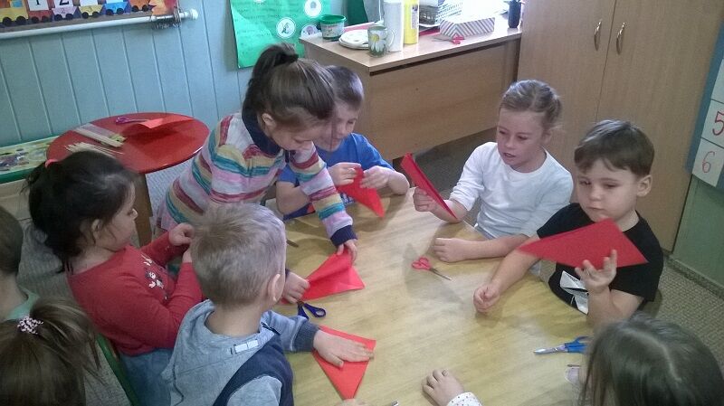 Madzia postanowiła pochwalić się jednym ze swoich talentów. Dziewczynka przygotowała i poprowadziła zajęcia plastyczne, podczas których uczyła dzieci ze swojej grupy, jak złożyć tulipana z papieru metodą origami. Dziewczynka zadbała o to, by wytłumaczyć przedszkolakom każdy najdrobniejszy szczegół tego zadania, a oni słuchali jej "z zapartym tchem". Brawo Madzia! :)