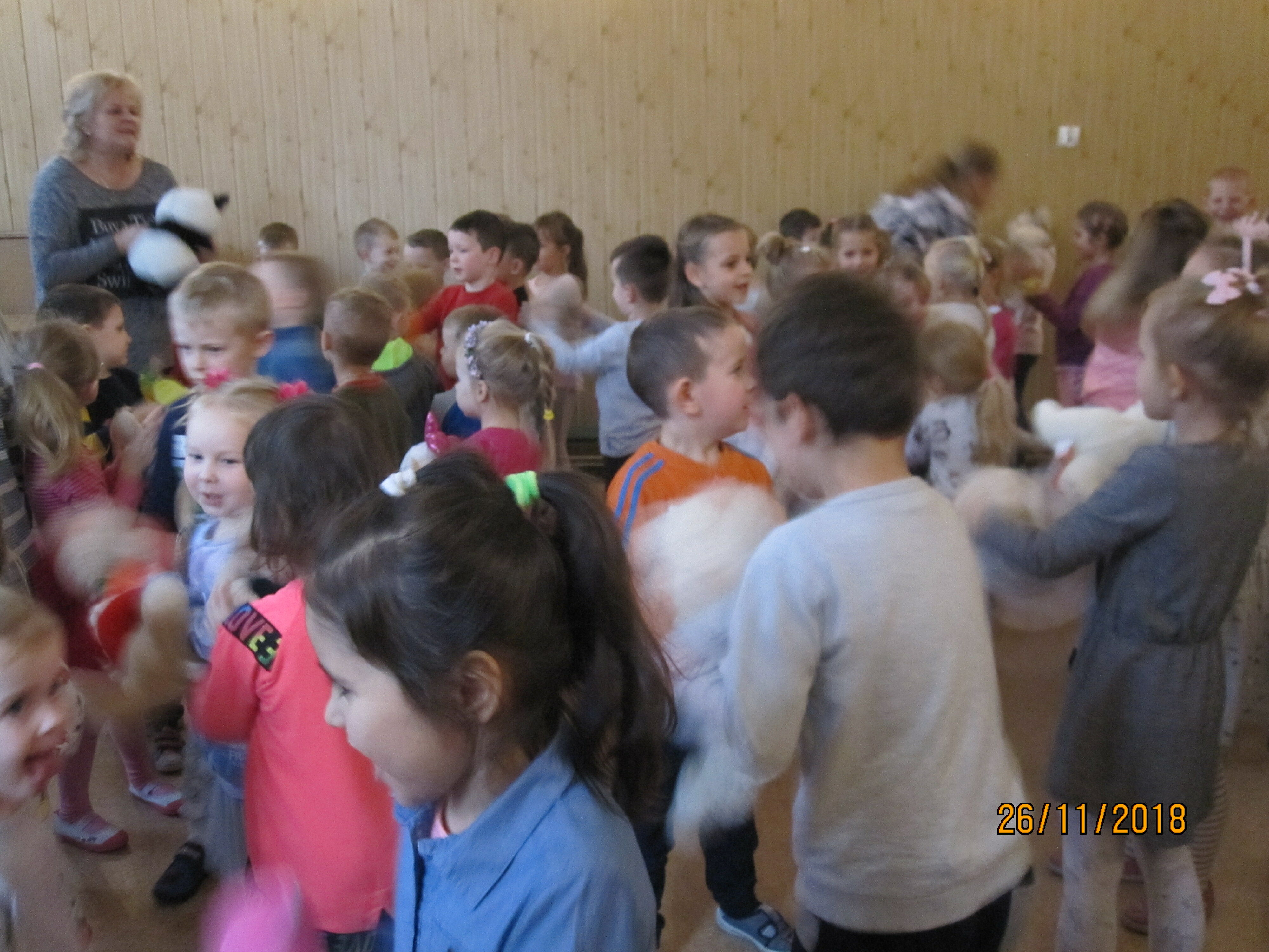 Dziś w naszym przedszkolu miłe święto: Dzień Pluszowego Misia. Z tej okazji wszystkie małe i duże przedszkolaki wraz z misiami doskonale bawili się na specjalnie przygotowanej dyskotece. Nie zabrakło misiowych piosenek i tego, co misie lubią najbardziej...miodu.