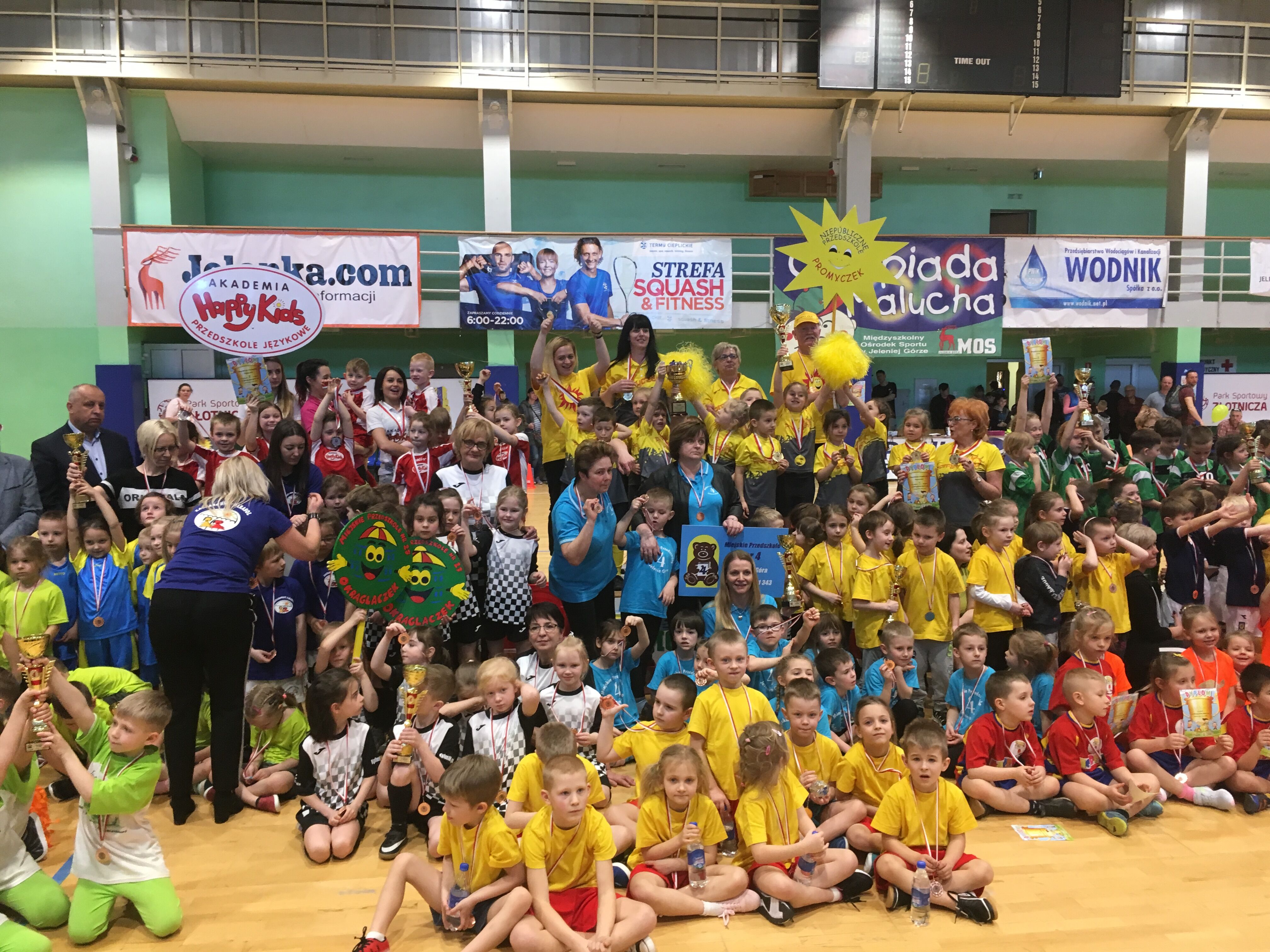 W tym dniu szesnaście przedszkoli walczyło o puchar Prezydenta Miasta Jelenia Góra. Dzieci rywalizowały w różnych konkurencjach sportowych z elementami biegu, celności, skoku na piłce, czworakowaniu itp. Wszystkim zawodnikom towarzyszył duch walki wzmocniony dopingiem wspaniałych kibiców. Odbieranie medali i pucharu na podium było dla zawodników wielkim przeżyciem. Oprócz sportowej rywalizacji i dobrej zabawy olimpiadzie przyświecał jeszcze jeden cel, zbiórka pieniędzy na rehabilitację chorego chłopca na wózku. Nie brakowało dobrych serc.
