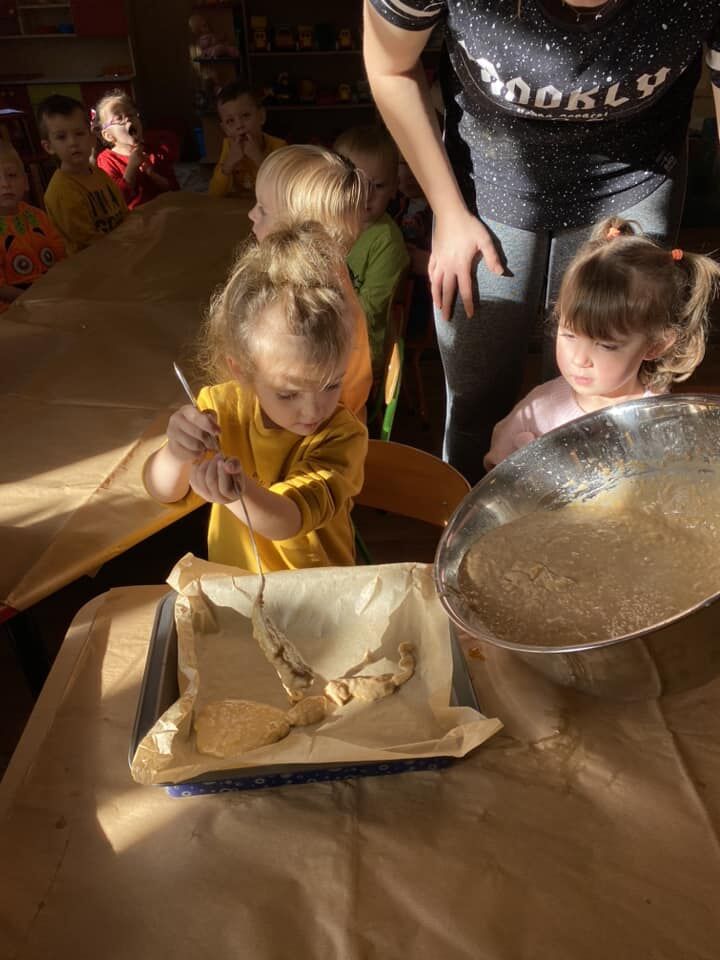 Jesienne ,,Święto Dyni” w grupie ,,Żabek” i ,,Żuczków” to wspólne pieczenie ciasta dyniowego oraz ozdabianie babeczek. Nie brakowało emocji podczas gotowania. Każdy jednak cierpliwie czekał bo wiedział, że końcowy efekt ich pracy będzie bardzo zadowalający. I tak też było. Wszystko zostało zjedzone ze smakiem.