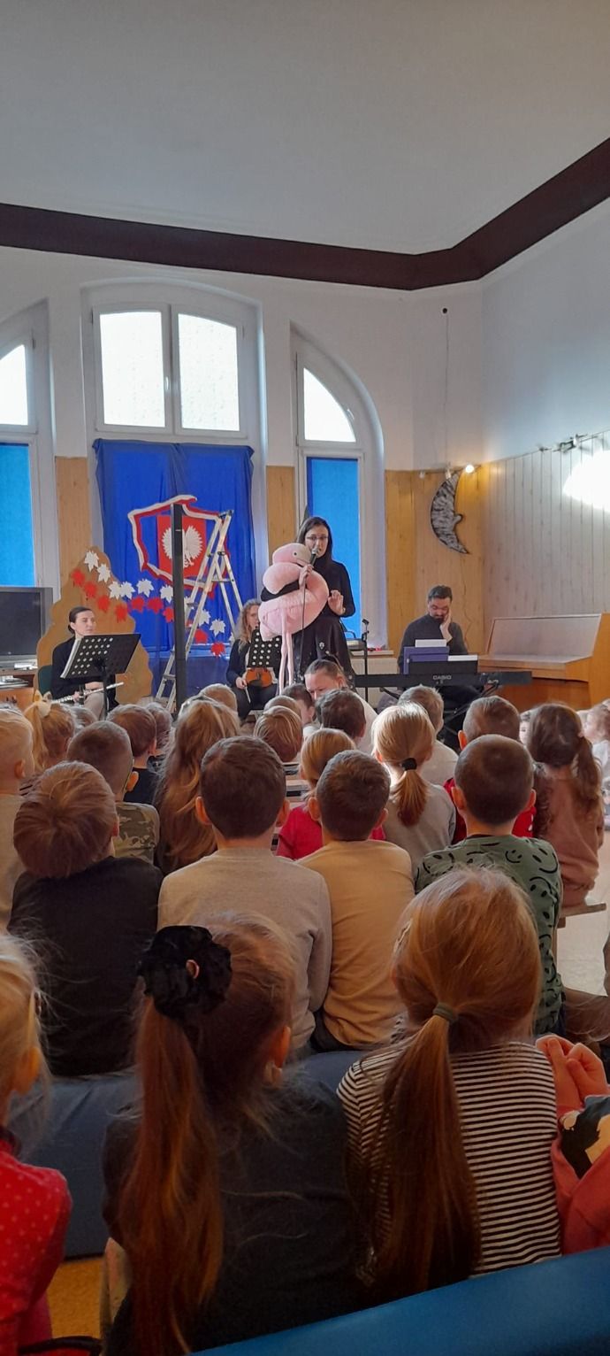 ,,Jesienią nutki się rumienią” pod takim tytułem odbyła się w przedszkolu 8 listopada audycja muzyczna dla dzieci. To muzyczna opowieść o historii hymnu Polskiego, Roty, Marii Konopnickiej i innych symboli narodowych przy dźwiękach najpiękniejszych pieśni patriotycznych.