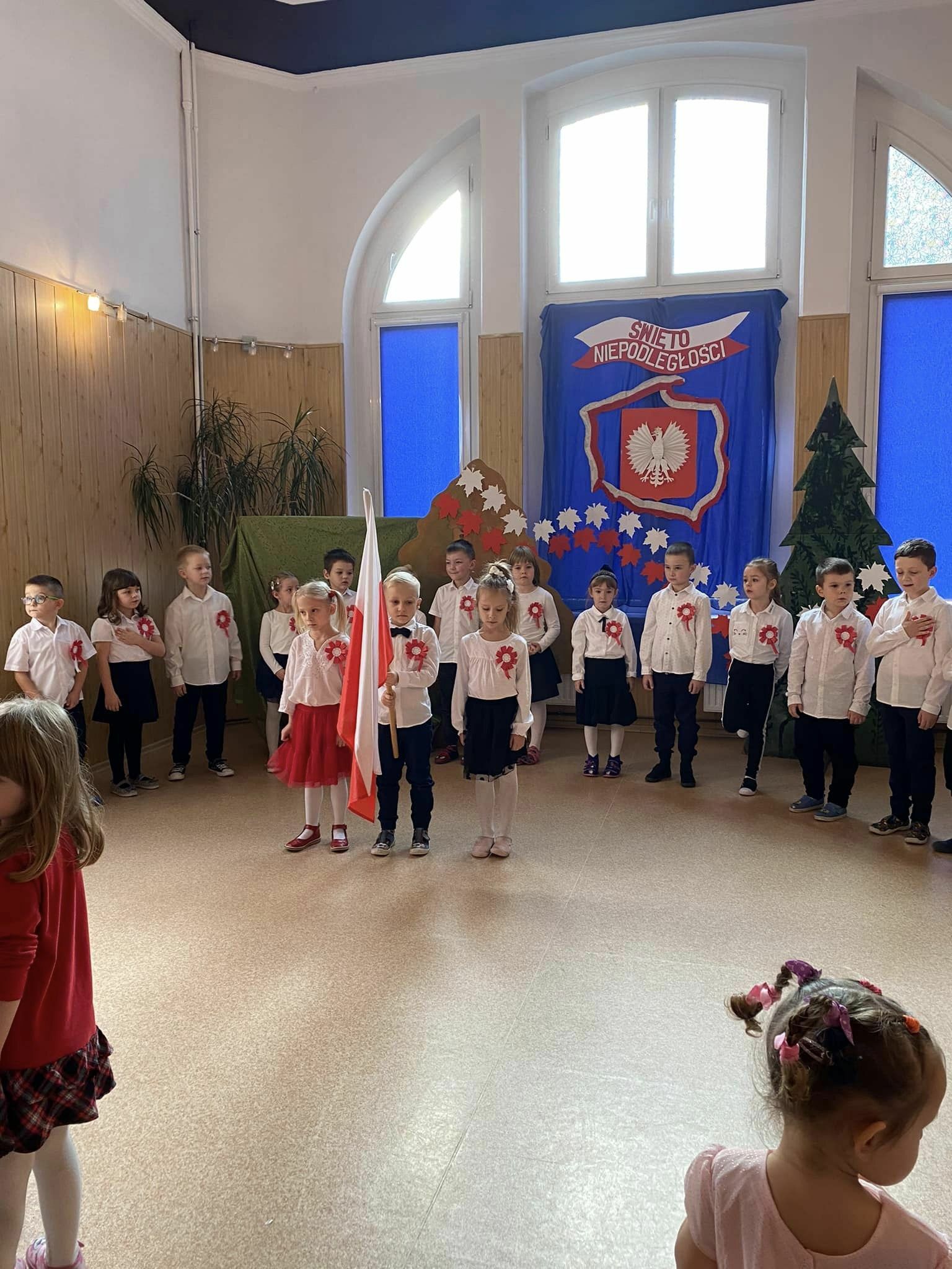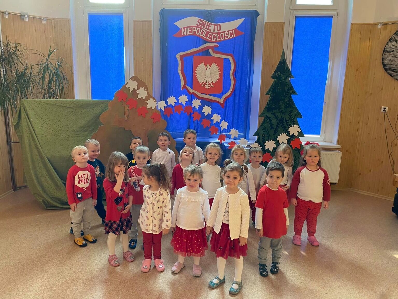10 listopada w biało- czerwonych barwach oraz odświętnych strojach odbyła się w przedszkolu akademia z okazji Dnia Niepodległości, przygotowana przez starszaków z grupy,, Pszczółki”. Mali patrioci w krótkiej inscenizacji, wierszach i piosenkach przybliżyli swoim młodszym kolegom i koleżankom historię Polski, a także przynależność do ojczyzny- Polski. Wspólnie odśpiewany hymn zjednoczył dużych i małych zebranych na sali.