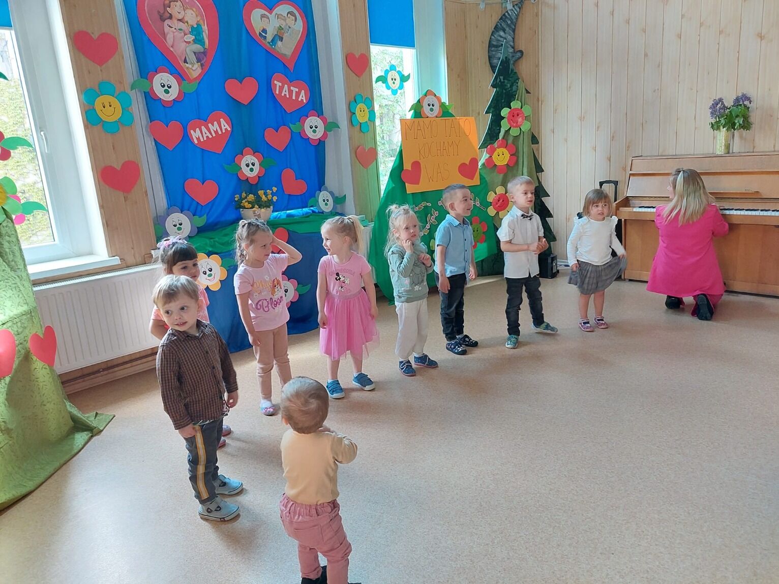 Dzień Matki i Ojca to jedno z piękniejszych świąt w przedszkolu. Przez cały tydzień odbywały się w poszczególnych grupach wiekowych spotkania z najbliższymi. Nie brakowało wierszy, tańców, piosenek w języku polskim i angielskim. W ten sposób dzieci mogły wyrazić dozgonną wdzięczność i miłość do rodziców za dar życia i miłości. W niejednym oku zakręciła się łza, kiedy ich pociecha na zakończenie wręczała upominek.