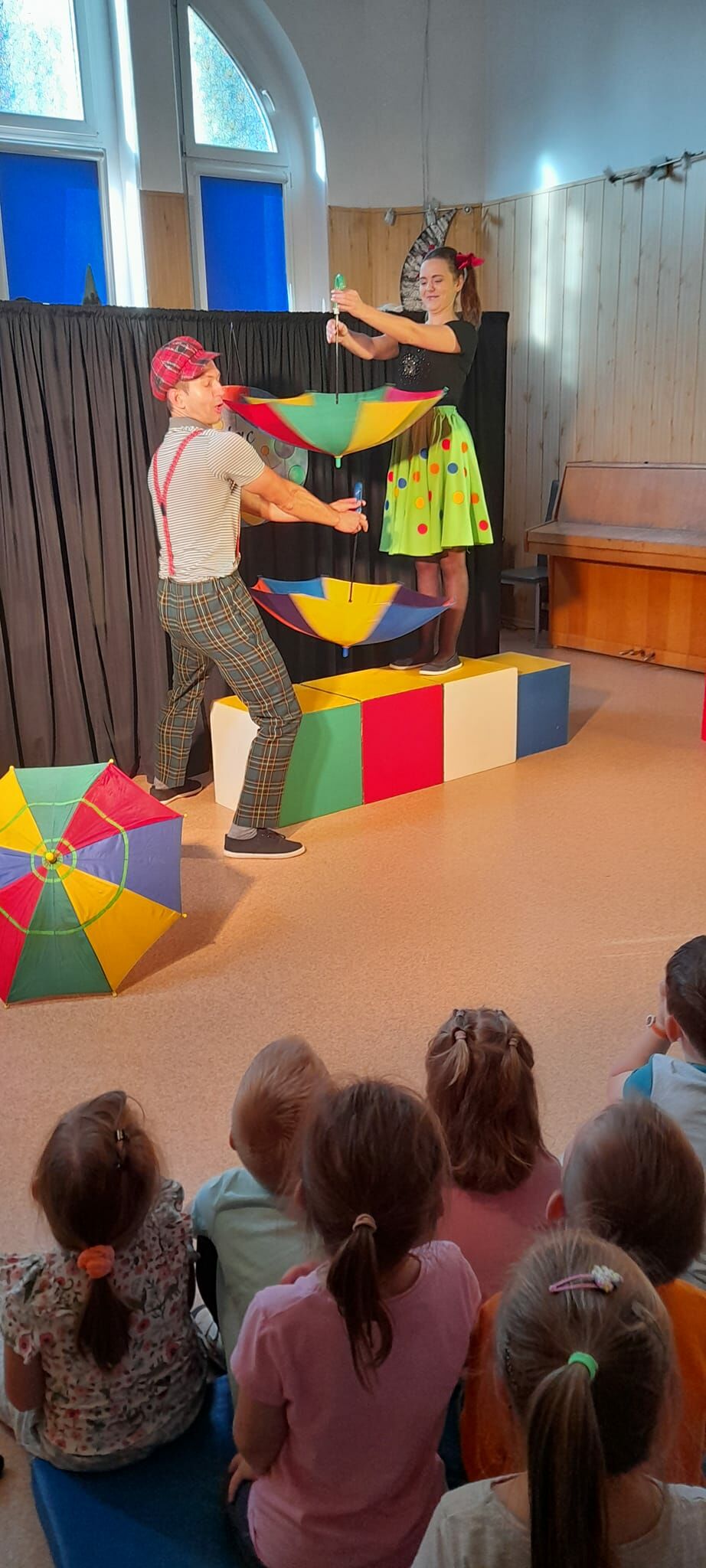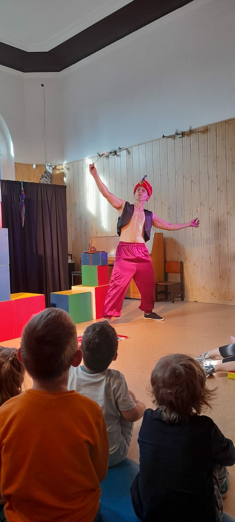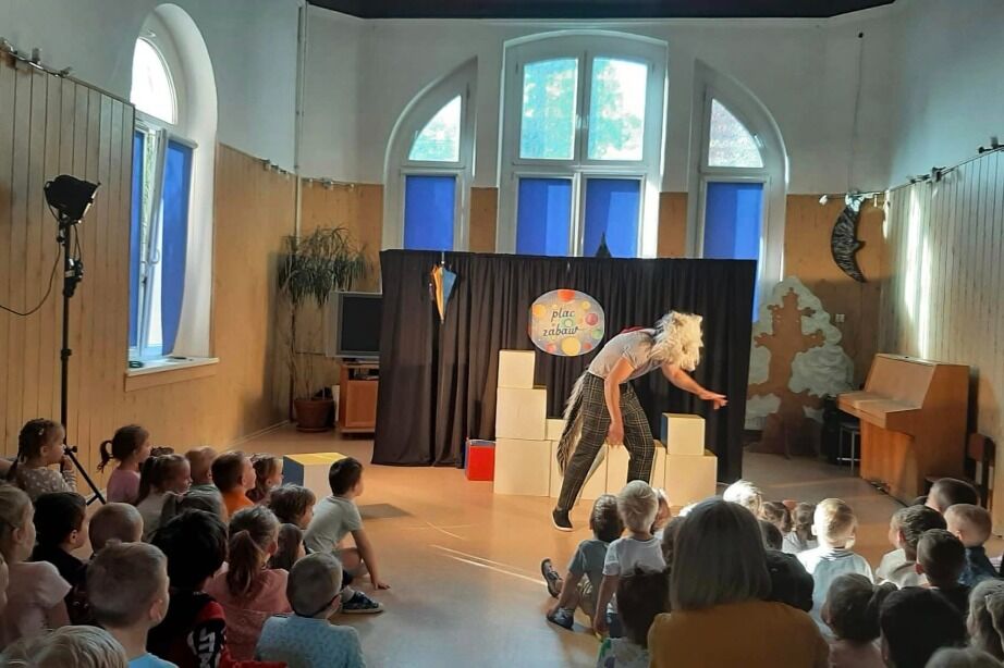 ,,Podróż za uśmiech” to spektakl z jakim przyjechał do naszego przedszkola 18 września teatr ,,Igraszka” z Wałbrzycha. Aktorzy jak zwykle przyłożyli wszelkich starań, by na twarzach dzieci zagościł uśmiech. Bohater teatrzyku z czarodziejskich klocków wyczarowywał przeróżne pojazdy, jakimi zwiedzał świat. Budowanie z klocków jest przecież bliskie każdemu dziecku. Kolorowe stroje aktorów, scenografia, niezawodny humor i gesty bardzo podobały się dzieciom.