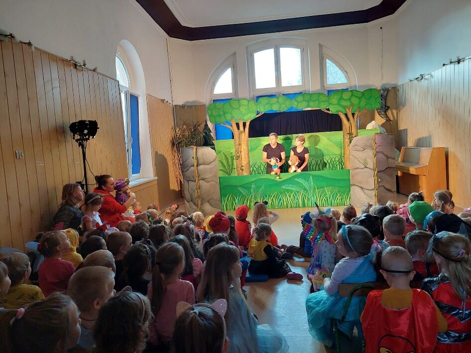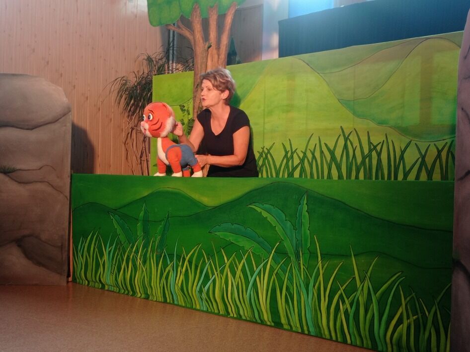 ,,Tygrys Pietrek” to spektakl z jakim przybył do przedszkola Teatr ,,Igraszka”. Jak zwykle mogliśmy liczyć na sporą dawkę dobrej zabawy, świetną animację. Spektakl opowiada o lękliwym Tygrysku o przewrotnym imieniu- Pietrek. Bohater wyrusza na wyprawę w poszukiwaniu odwagi. Chce ją kupić w sklepie, zdobyć w wojsku, nauczyć się jej od Indian…