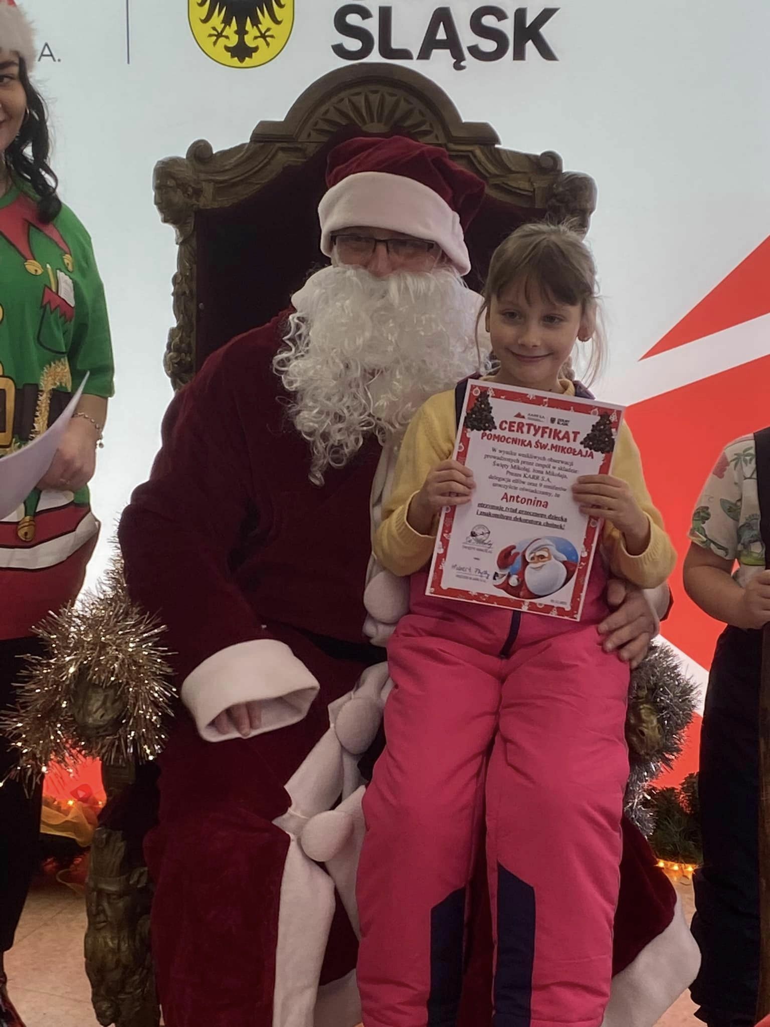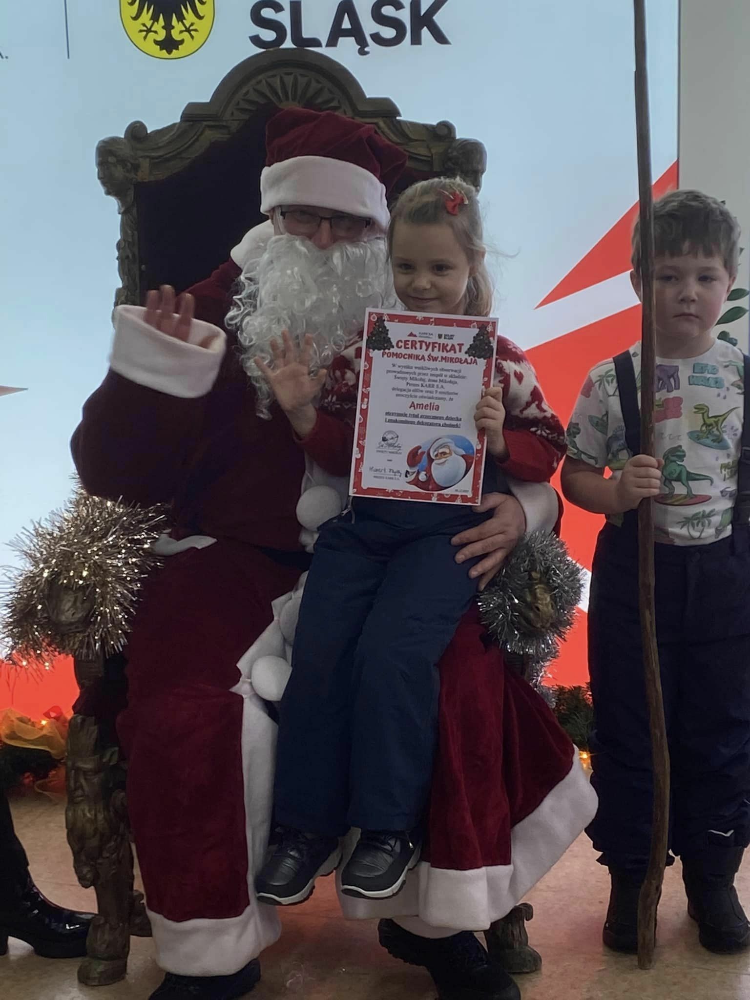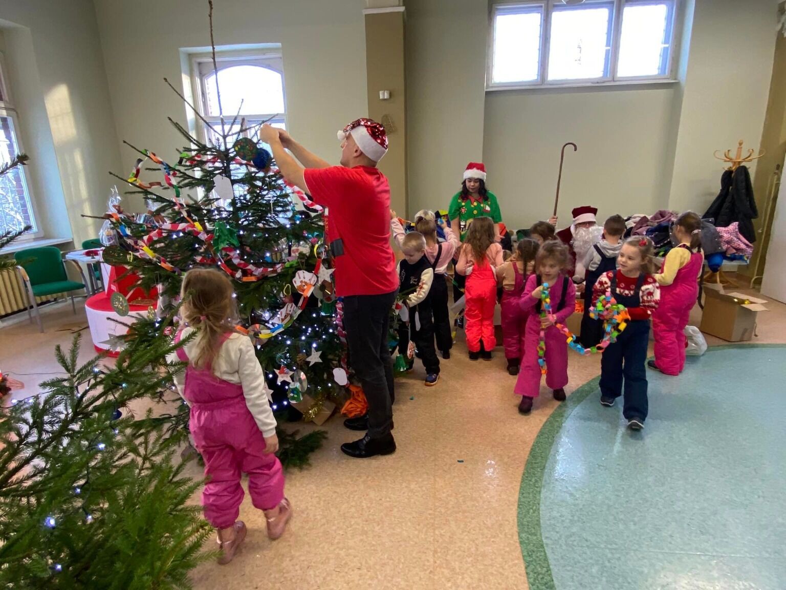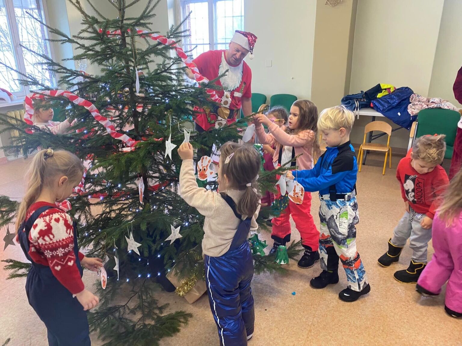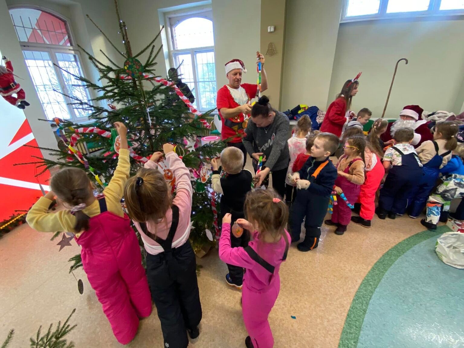 Kilka dni wcześniej dzieci przygotowywały w przedszkolu z wielkim zapałem kolorowe łańcuchy i inne błyszczące ozdoby na choinkę. Mikołaj, który po udekorowaniu choinki pojawił się w Galerii nagrodził dzieci pamiątkowymi certyfikatami ,,Pomocnika Świętego Mikołaja” oraz drobnymi upominkami za wykonaną pracę.