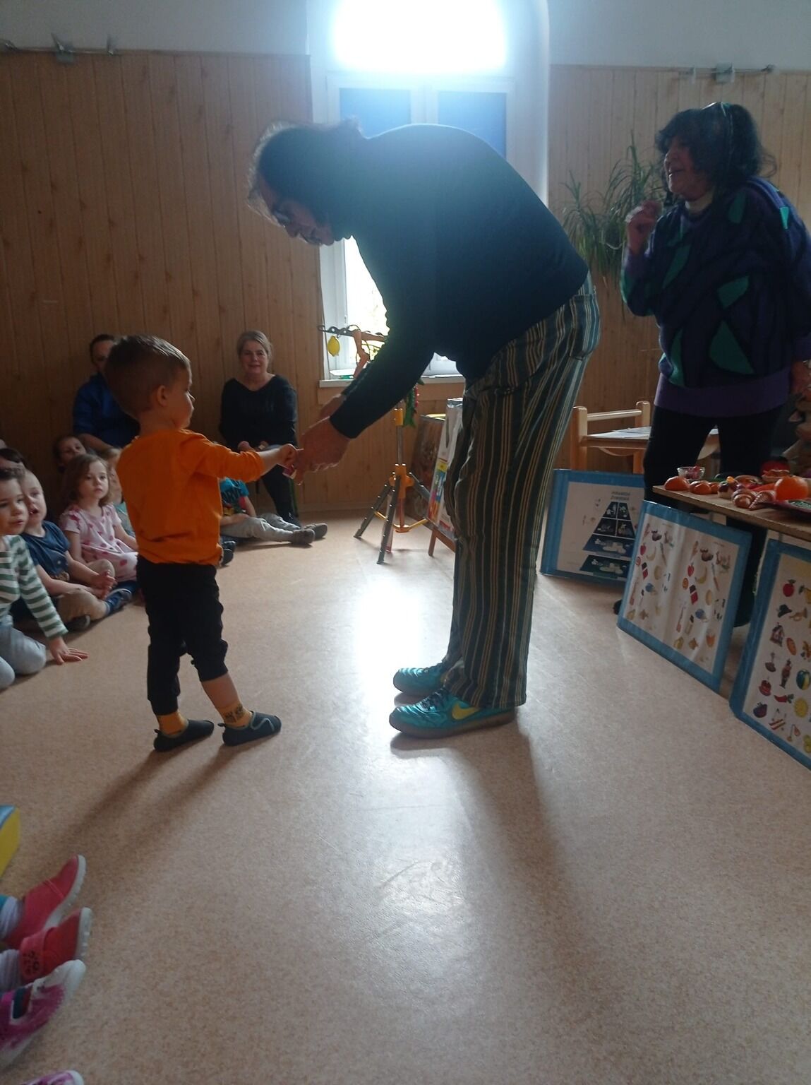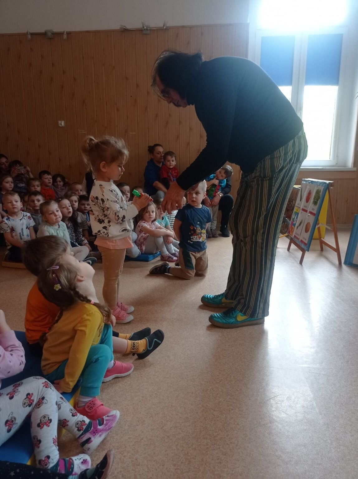 Dzisiaj w przedszkolu było zdrowo i kolorowo. ,,ABC zdrowego odżywiania, zdrowo jemy nie tyjemy” to nowy program edukacyjno- profilaktyczny z jakim przybyli do naszego przedszkola p. Bogdan i p. Ewa - przedstawiciele Wydziału Edukacji i Szkoleń z Centrum Popularyzacji Ochrony Środowiska oraz Ruchu Drogowego we Wrocławiu. Celem tego spotkania było przedstawienie dzieciom prawidłowych nawyków prozdrowotnych.