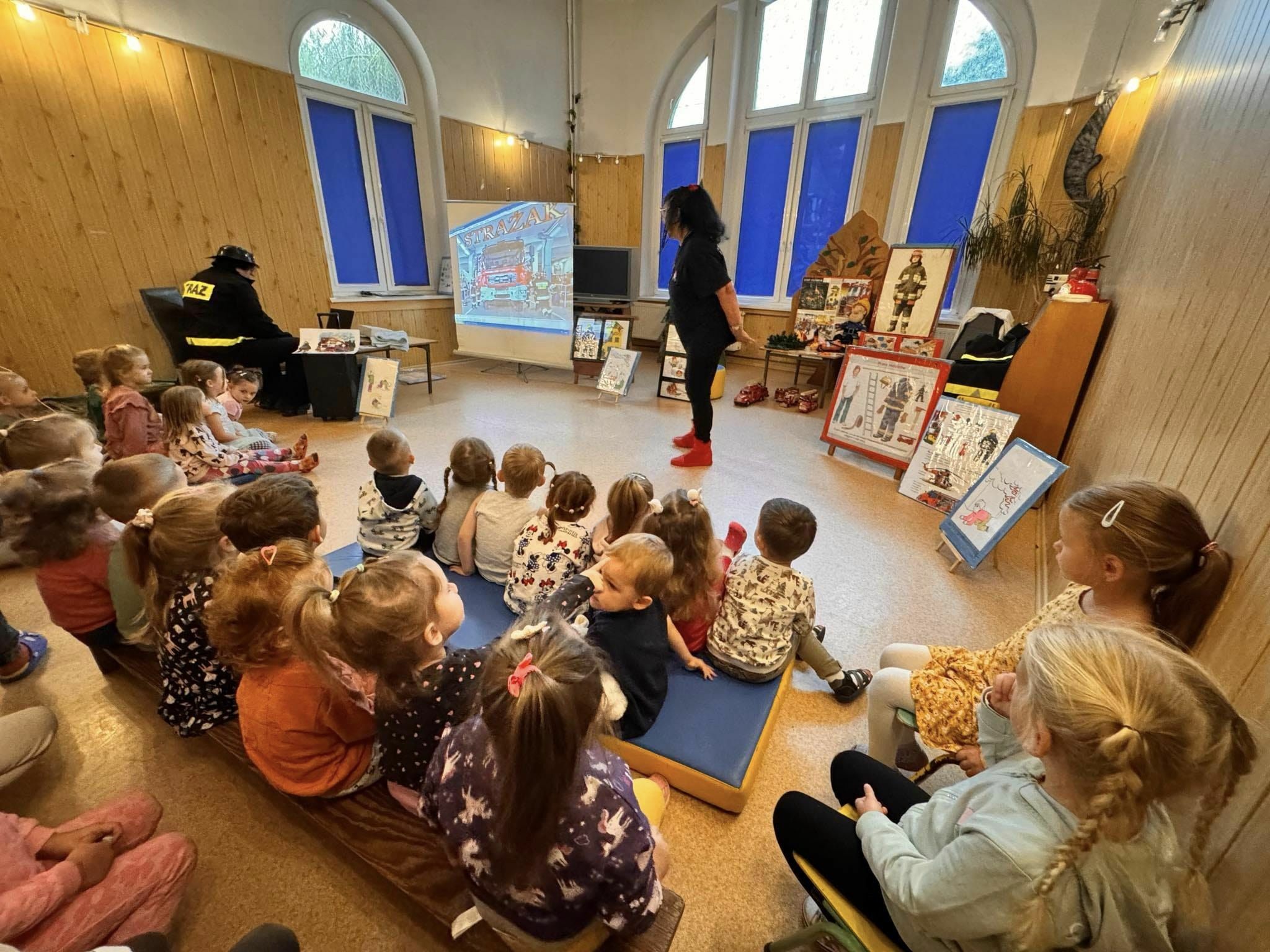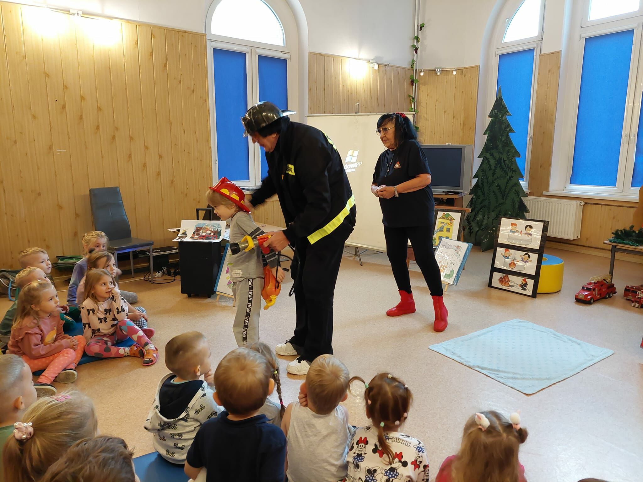 Marzeniem prawie każdego przedszkolaka jest zostać w przyszłości strażakiem. Mali chłopcy zafascynowani są wozem strażackim, rozglądają się za nim na ulicy, nasłuchują wycia syreny. Celem tego spotkania było przybliżenie dzieciom pracy i zadań straży pożarnej.