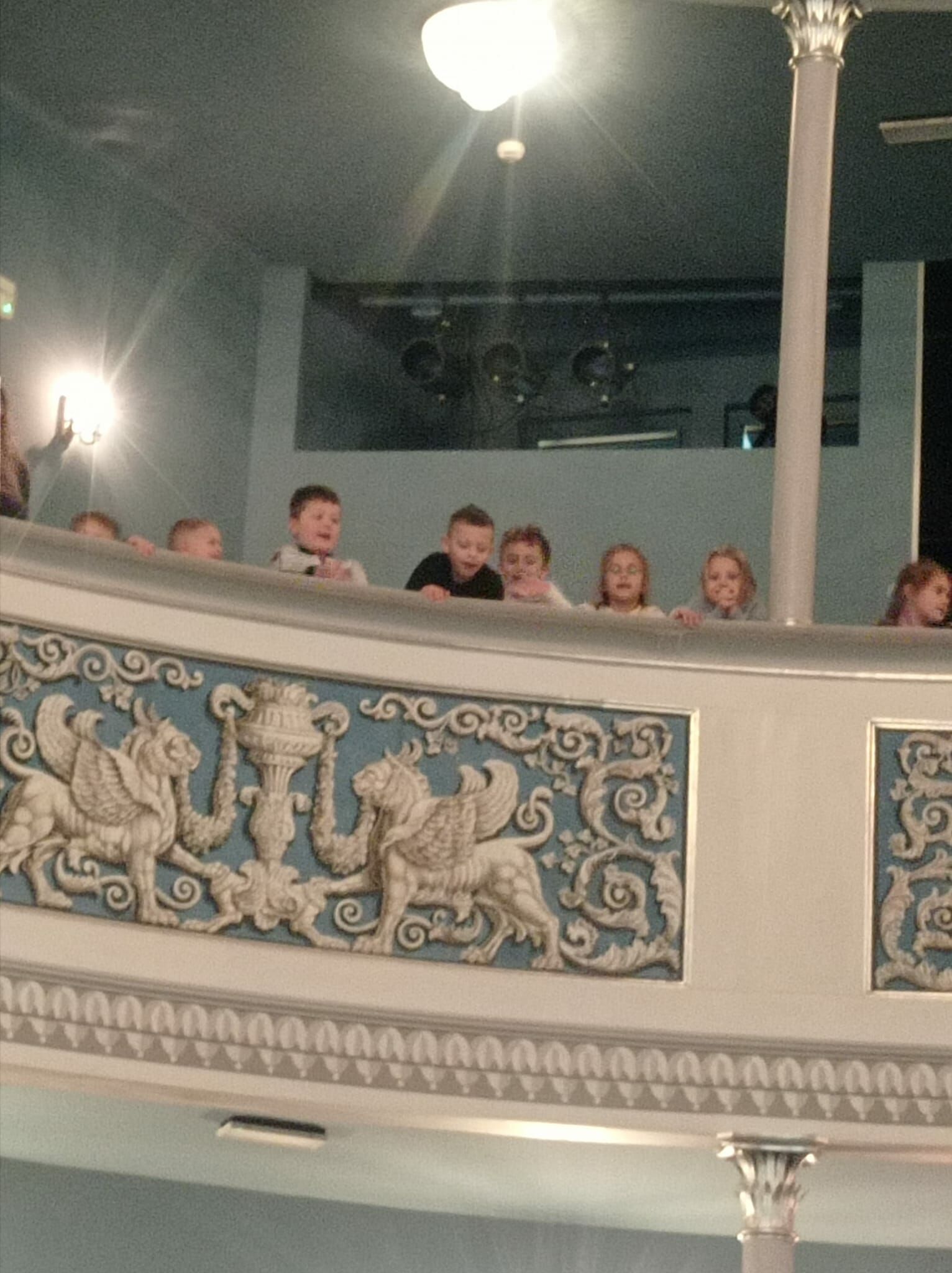 w spektaklach dla dzieci, a także sposób ich ożywiania. Na zakończenie spotkania przedszkolaki z Panią prowadzącą mini lekcję nt teatru udały się na balkon, by z niego podziwiać scenę i widownię. Pełne wrażeń, zadowolone powróciły do przedszkola.