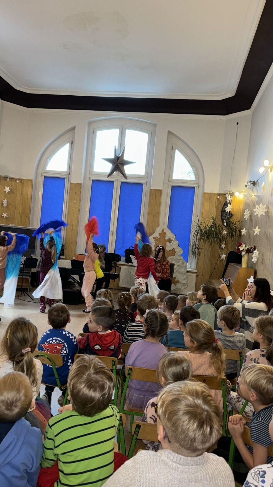 Zimowa muzyka zagościła w przedszkolu. Tym razem przewodnikiem audycji umuzykalniającej były dźwięki muzyki z dalekiej północy, krainy skutej lodem. Muzyczne zabawy, proste elementy rytmiczne i dźwięki imitujące zimowe otoczenie opowiedziane przez instrumenty wprowadziły dzieci w zimowy świat. Muzyka to świetny sposób, aby poczuć zimowy nastrój, nawet gdy nie ma śniegu za oknem.