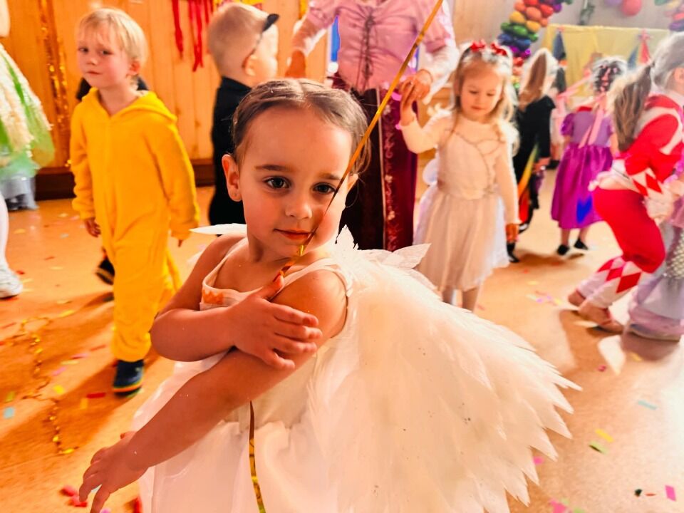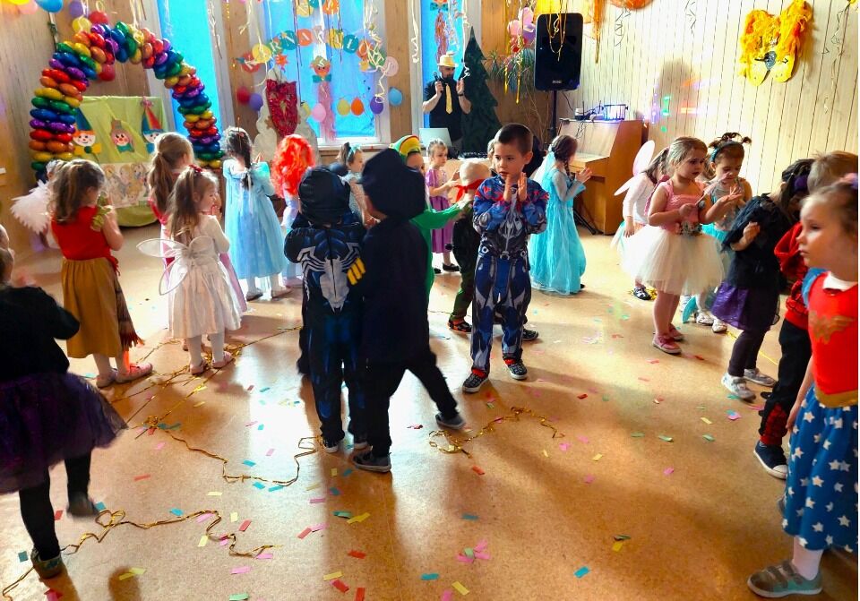 26 lutego odbył się w przedszkolu wyjątkowy bal – karnawałowy bal przebierańców, pełen radości i kolorowych strojów. Dzieci przebrały się za swoje ulubione postacie – księżniczki, piratów, superbohaterów, zwierzątka i inne bajkowe postacie, co stworzyło magiczną atmosferę.
