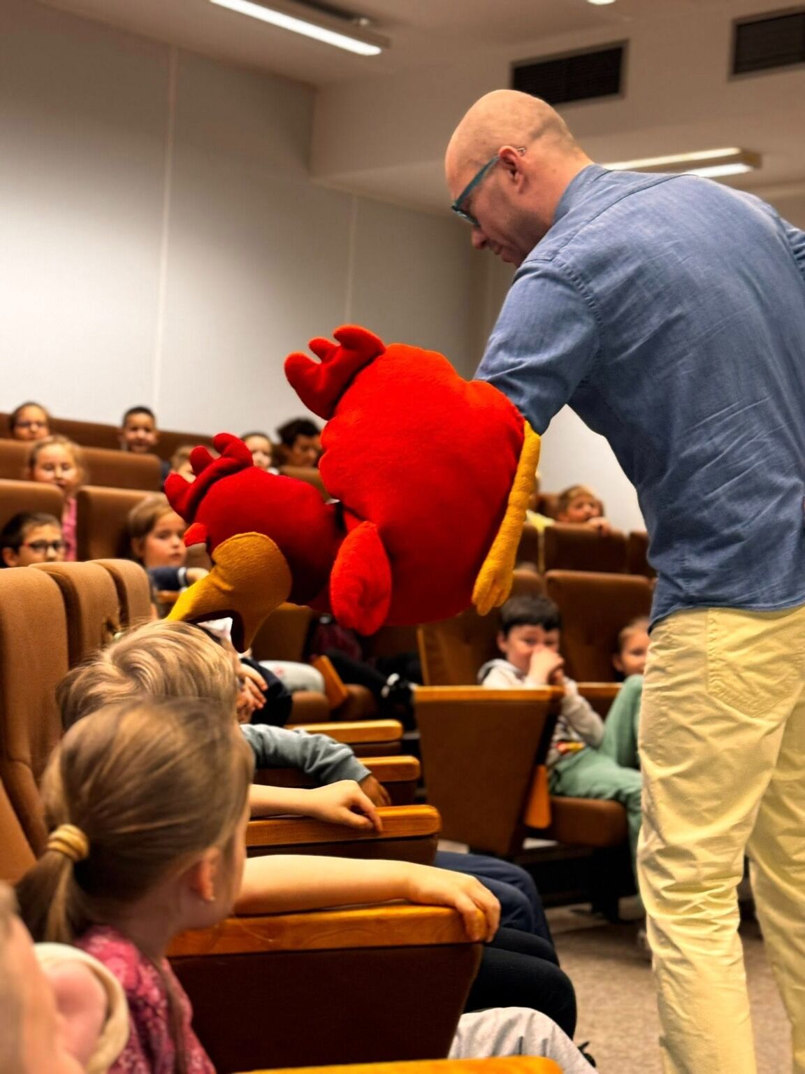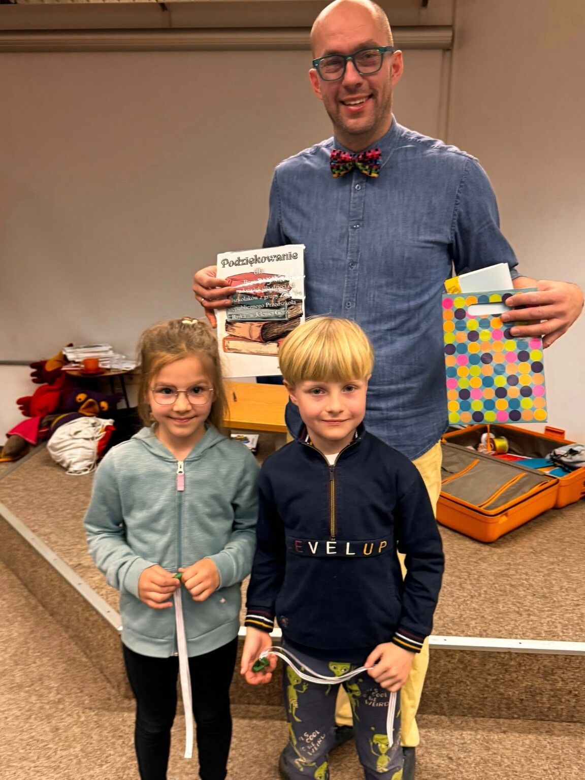 W środowy poranek, tuż po śniadaniu grupa ,,Żuczki” wraz z wychowawcą udała się do Książnicy Karkonoskiej w Jeleniej Górze na spotkanie z Panem Michałem - autorem książek dla dzieci pisanych wierszem, a znanego jako Pan Poeta. Podczas spotkania Pan Poeta zapoznał dzieci ze swoją twórczością, przeczytał dzieciom kilka wierszy ze swoich książek. Oprócz tego były wspólne zabawy z artystą i mnóstwo śmiechu. Na zakończenie można było zakupić pamiątkowe książeczki wraz z autografem.