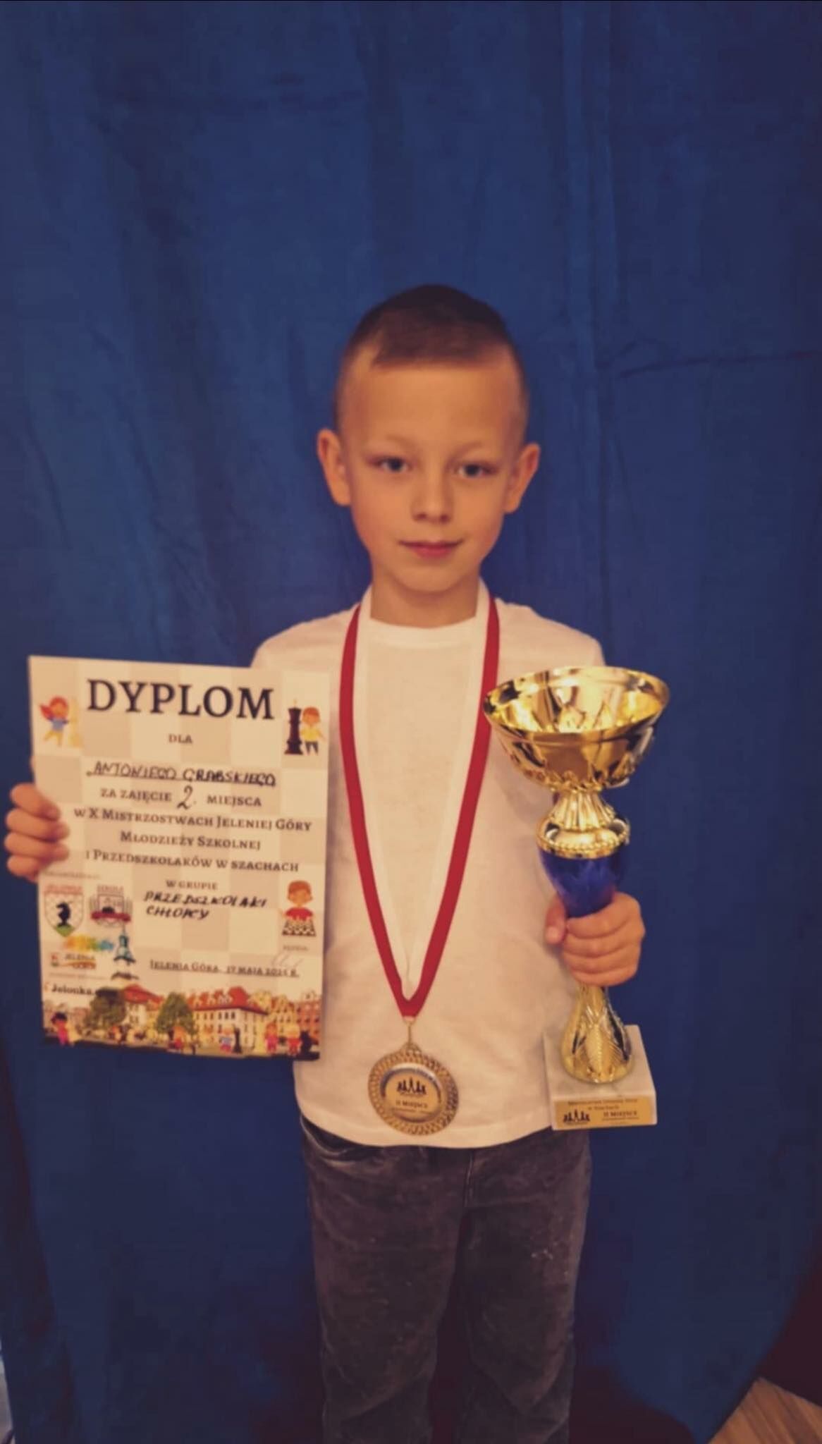 Z wielką dumą i ogromną radością dzielimy się fantastyczną wiadomością – nasz przedszkolak, Antoni Grabski z grupy ,,Żuczki”, odniósł wielki sukces podczas Jeleniogórskich Mistrzostw w Szachach!