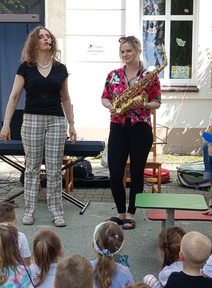 Podczas ostatniej już w tym roku audycji umuzykalniającej pt. ,,Podróże w czasie i przestrzeni”, która odbyła się w plenerze, na podwórku przedszkolnym słuchaliśmy pięknych utworów muzycznych inspirowanych podróżami i odległymi miejscami. Wszystko za sprawą szalonego naukowca, który zbudował wehikuł czasu przenoszący w czasie nie tylko ludzi, ale także dźwięki. Odgłosy natury, pojazdów i ruchu ulicznego z muzyką na żywo podnosiły walory muzyczne koncertu. To była nieprawdopodobna historia, w centrum której znalazły się przedszkolaki, a także nowe doświadczenie. Koncert ten dał dużo radości, pozytywnej energii oraz świetnej zabawy, która wprowadziła wszystkich w wakacyjny nastrój.