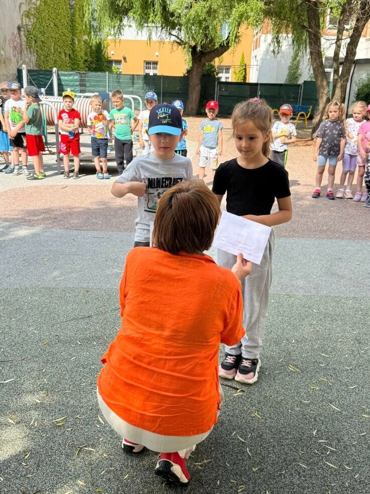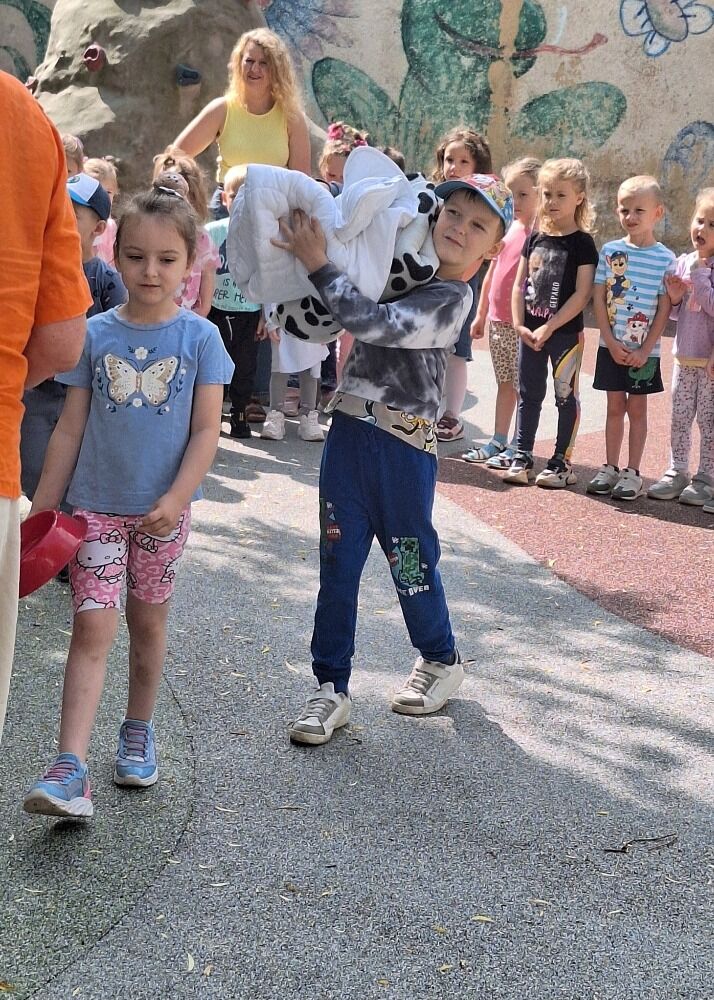 5 czerwca przekazaliśmy pieniążki uzbierane podczas loterii fantowej na Festynie Rodzinnym w przedszkolu na rzecz podopiecznego Kubusia ze schroniska dla małych zwierząt. Pani Anna Nikołajuk wraz z Haczi, odebrała z rąk przedszkolaków cały dochód z loterii – 1.020 zł jak i pieniążki zebrane do skarbonek w poszczególnych grupach w kwocie 500 zł, koce i inne akcesoria dla czworonogów. Jeszcze raz dziękujemy wszystkim dzieciom, rodzicom i opiekunom za Waszą hojność i zaangażowanie. Wasza pomoc pozwoli zapewnić schorowanemu seniorowi Kubusiowi i innym podopiecznym lepsze warunki, wyżywienie oraz opiekę weterynaryjną. To piękny gest, który pokazuje, jak wielkie serca mają nasi mali i duzi uczestnicy festynu, daje nadzieje na lepsze życie dla tych bezbronnych istot.