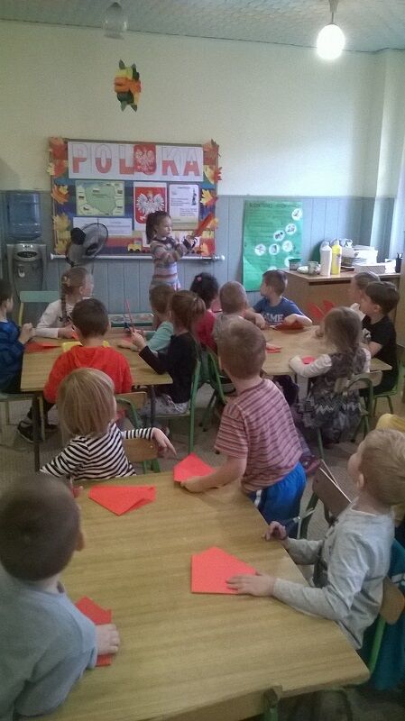 Madzia postanowiła pochwalić się jednym ze swoich talentów. Dziewczynka przygotowała i poprowadziła zajęcia plastyczne, podczas których uczyła dzieci ze swojej grupy, jak złożyć tulipana z papieru metodą origami. Dziewczynka zadbała o to, by wytłumaczyć przedszkolakom każdy najdrobniejszy szczegół tego zadania, a oni słuchali jej "z zapartym tchem". Brawo Madzia! :)