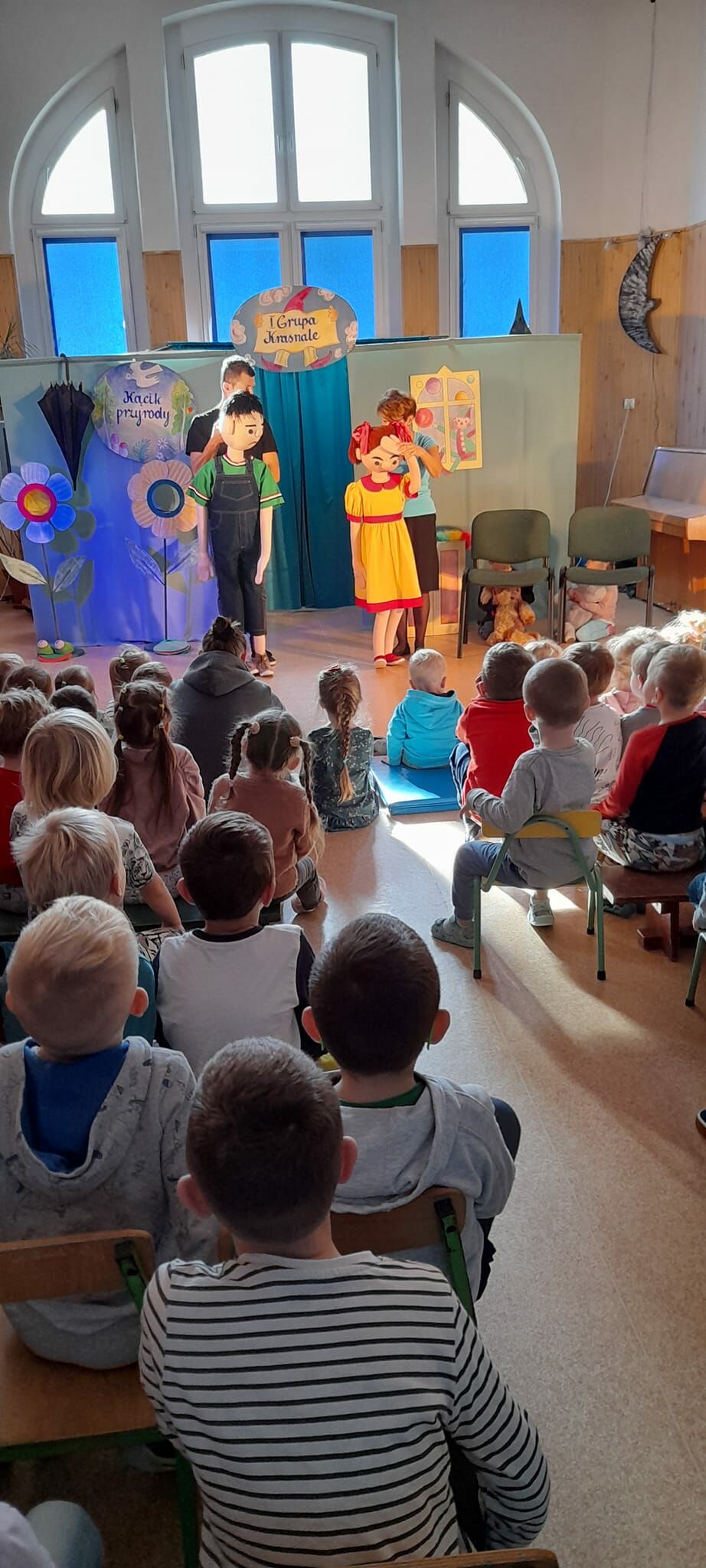 Jak zawsze obok wspaniałej gry artystów podziwialiśmy również starannie przygotowaną scenografię. Spektakl oprócz walorów rozrywkowych zawierał sporą dawkę wartości wychowawczych. W tym przedstawieniu mogły się wykazać także przedszkolaki, które brały aktywny udział występując z aktorami na scenie. Uczyły się jak segregować śmieci, bezpiecznie przechodzić przez jezdnię i jak opiekować się swoimi czworonożnymi przyjaciółmi.