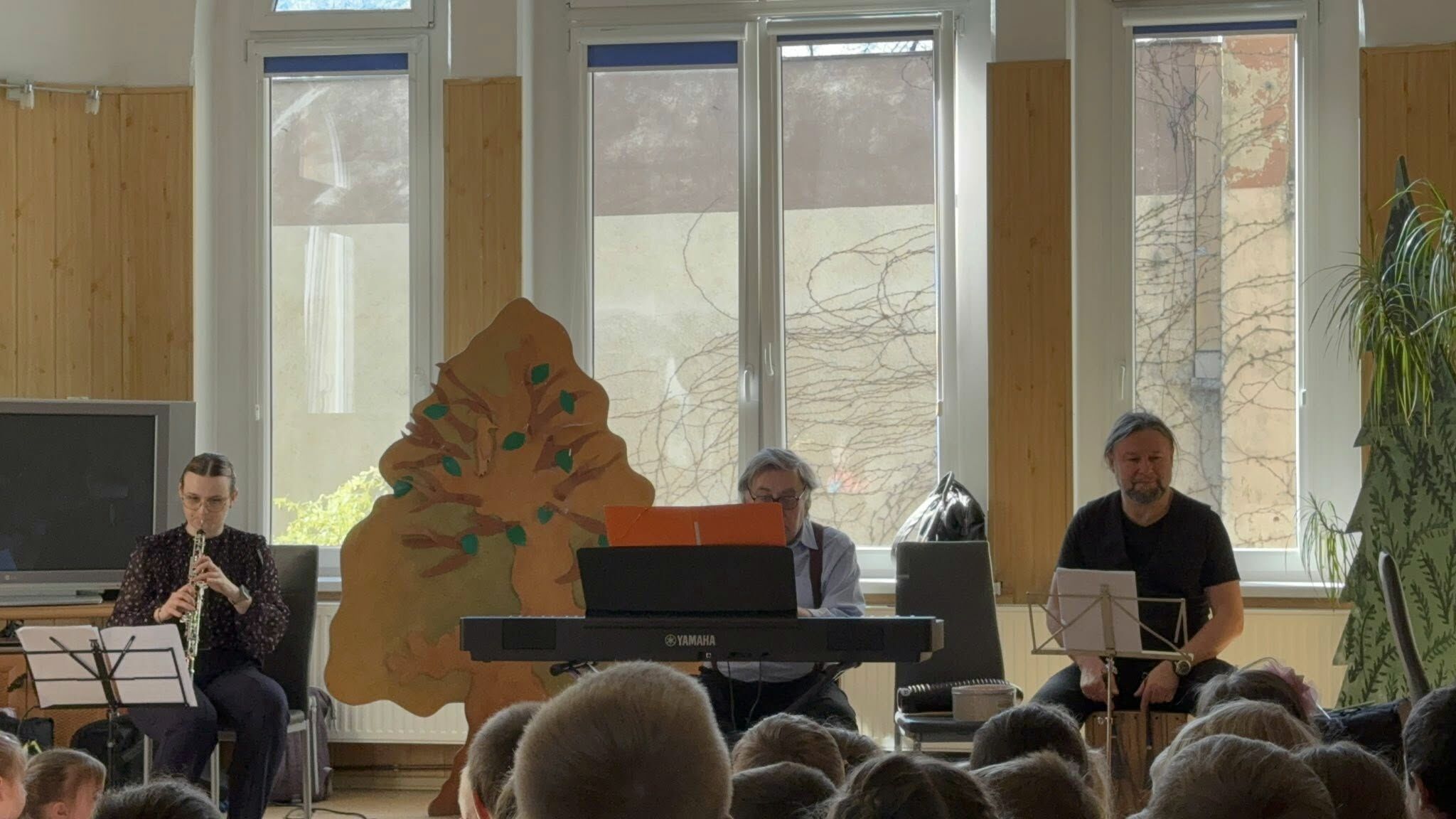 ,,Muzyka ze śmietnika” to temat przewodni kwietniowej audycji umuzykalniającej, która zapraszała do eko zabawy z rytmem. Przedszkolaki wcześniej przygotowały na koncert wraz ze swoimi wychowawcami instrumenty z materiałów z recyklingu do wspólnego muzykowania. Bohater koncertu – sympatyczny, ruchliwy szczurek imieniem Synkopa, wyrusza w świat