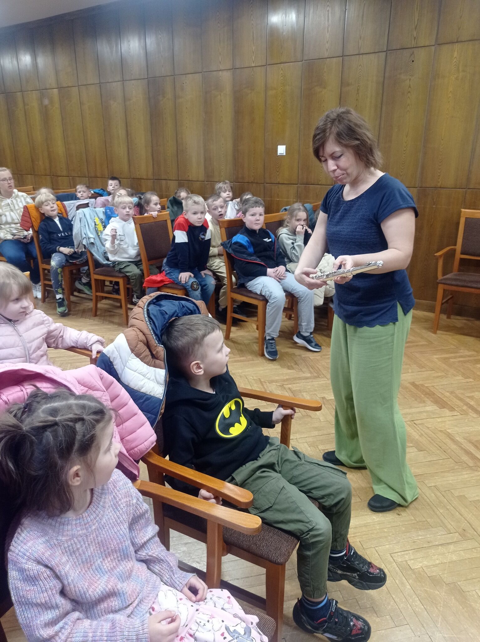 Odpowiadając na zaproszenie Szkoły Muzycznej gr. ,,Żuczki” i ,,Żabki” udały się na mini koncert w wykonaniu uczniów tejże szkoły. Koncert młodych artystów - promował naukę gry na instrumentach w szkole muzycznej, zachęcał do rozwijania pasji muzycznej i ukazywał, że muzyka to piękna sztuka. Starszaki poznały budowę niektórych instrumentów, sposób wydobywania z nich dźwięków, a także mogły osobiście przymierzyć się do nich.