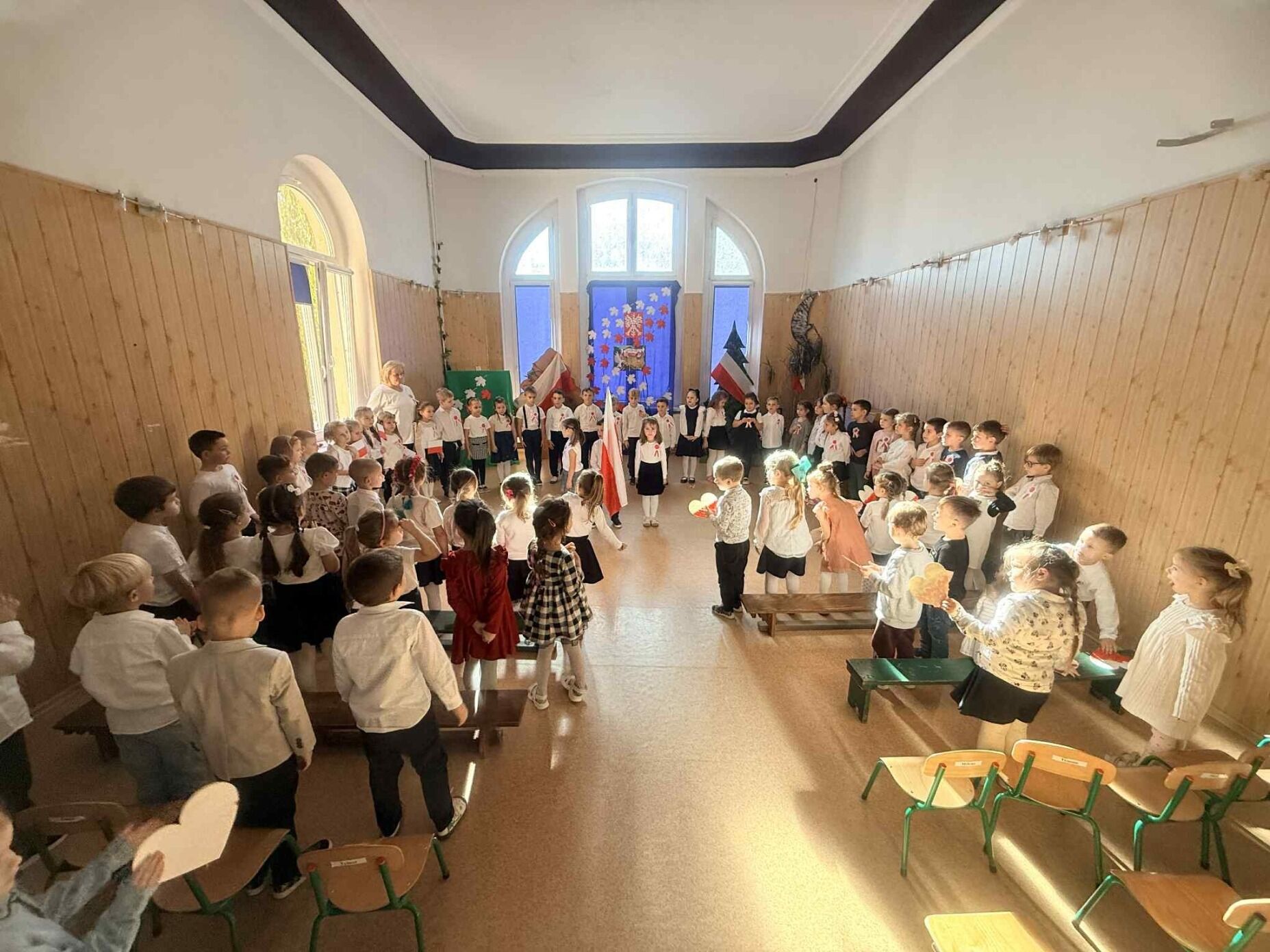 Starszaki w krótkim montażu słowno–muzycznym przypomniały, dlaczego obchodzimy 11 listopada. Opowiedziały, że tego dnia Polska po 123 latach niewoli odzyskała wolność. Dzieci recytowały wiersze o ojczyźnie, symbolach narodowych i miłości do kraju. Szczególnie wymowna była piosenka „Co to jest niepodległość” przekazana z dużą ekspresją.