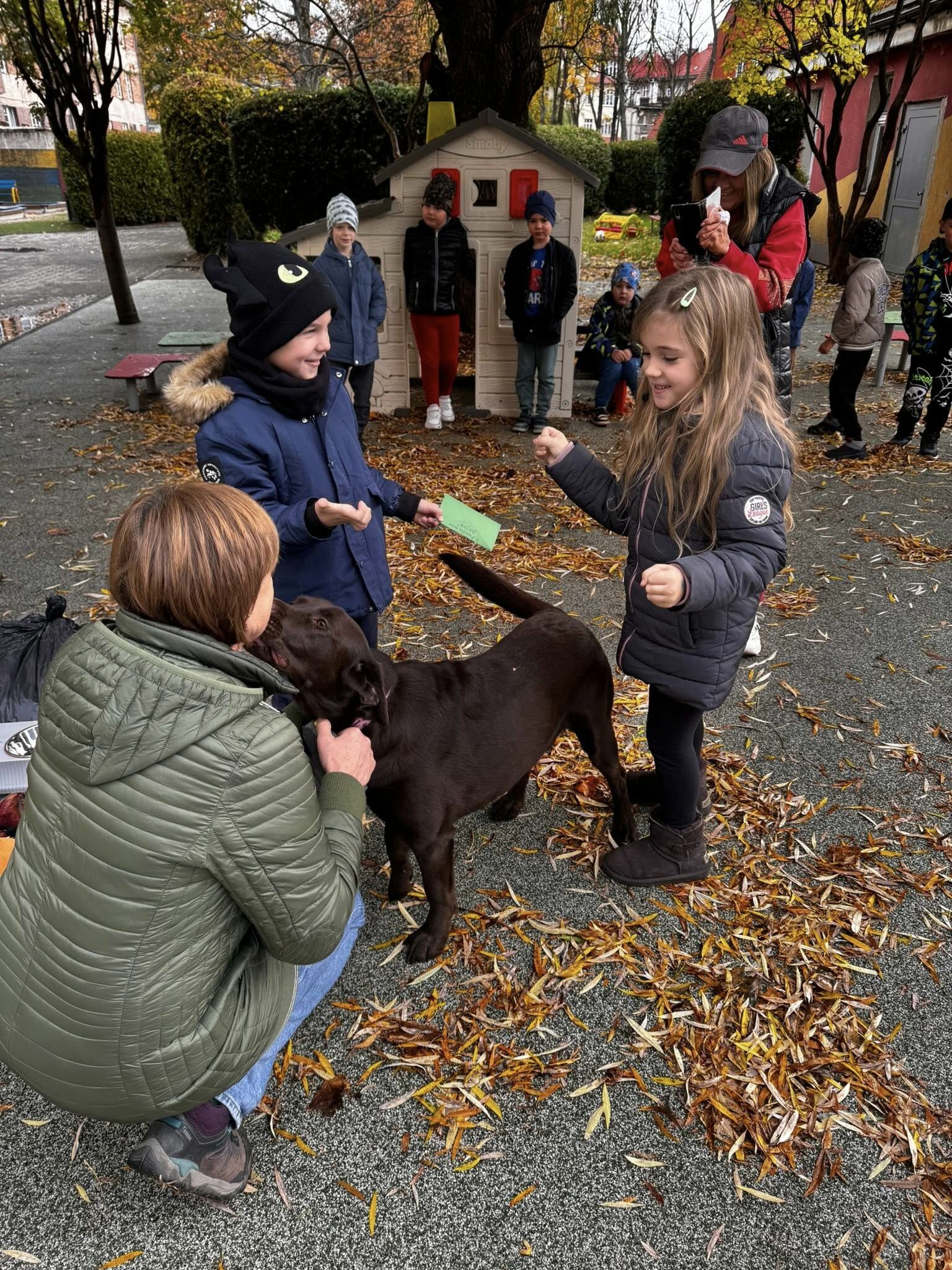 Podczas spotkania pani Ania opowiedziała dzieciom o codziennej pracy w schronisku, o potrzebach zwierząt oraz o tym, jak ważna jest odpowiedzialność człowieka wobec swoich czworonożnych przyjaciół. Dzieci dowiedziały się, jak właściwie opiekować się psem, jak go głaskać i jak rozpoznawać jego emocje.